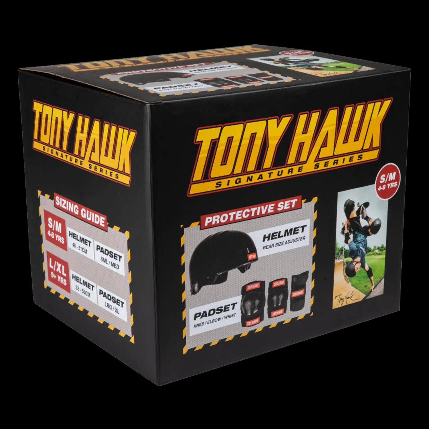 Setistä on saatavilla kaksi kokoa. Small/medium sopii noin 4–8-vuotiaille ja sisältää kypärän, joka sopii 48–51 cm:n päänympärykseen. Large/extra large sopii noin 9-vuotiaista ylöspäin ja sisältää kypärän, joka sopii 52–56 cm:n päänympärykseen.