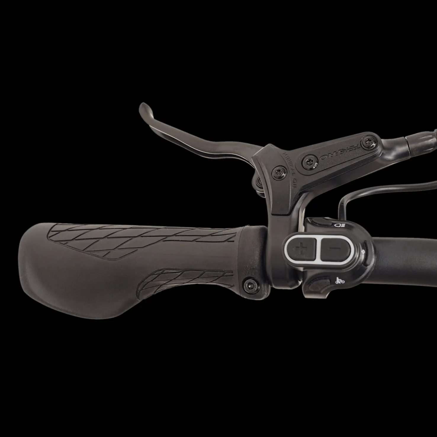 Vasemmalla puolella oleva kaukosäädin käyttää pyöräilytietokonetta varmistaen, että sinun ei tarvitse vaihtaa kahvaa ajon aikana, jotta pyörän toimintoja voidaan käyttää turvallisesti ja helposti. Kaukosäätimen avulla voit helposti kytkeä pyörän päälle ja pois päältä, vaihtaa eri avustustasojen välillä, käyttää kävelytilaa tai kytkeä ajovalot päälle ja pois päältä. Voit myös vaihtaa LCD-näytön eri näkymien välillä tarkistaaksesi matkamittarin, matkalaskurin, keskinopeuden, maksiminopeuden jne.