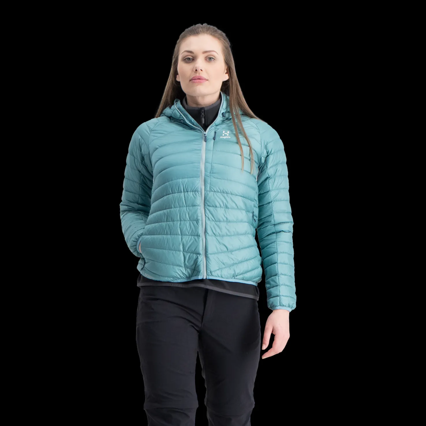 Haglöfsin Essens Down Hood on valmistettu kierrätetyistä, fluorihiilittömistä materiaaleista sekä jäljitettävästä untuvasta, mikä tekee takista bluesign®-hyväksytyn tuotteen.