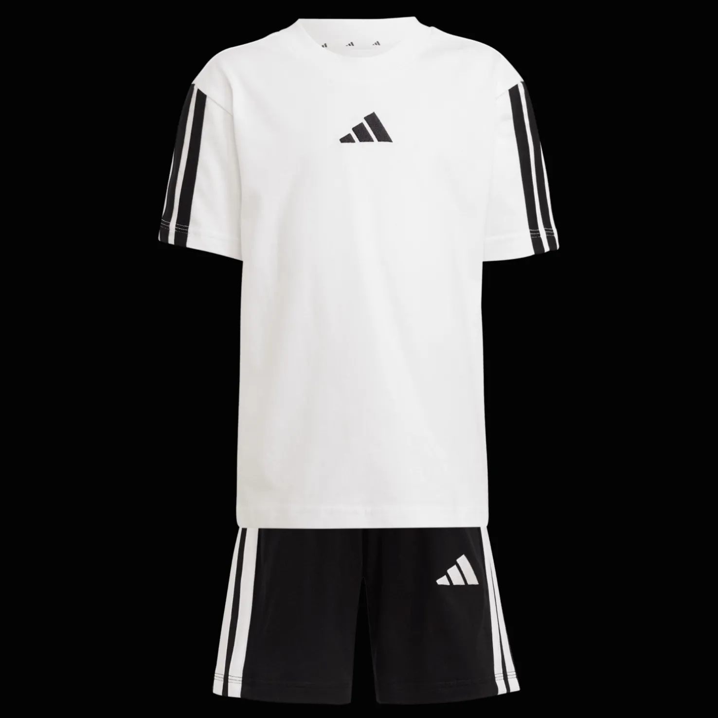 adidas Essentials Tee Set on mukava setti, jossa on t-paita ja shortsit, jotka on valmistettu vähintään 70 % kierrätetyistä materiaaleista, mikä on osa adidaksen pyrkimystä vähentää muovijätettä.