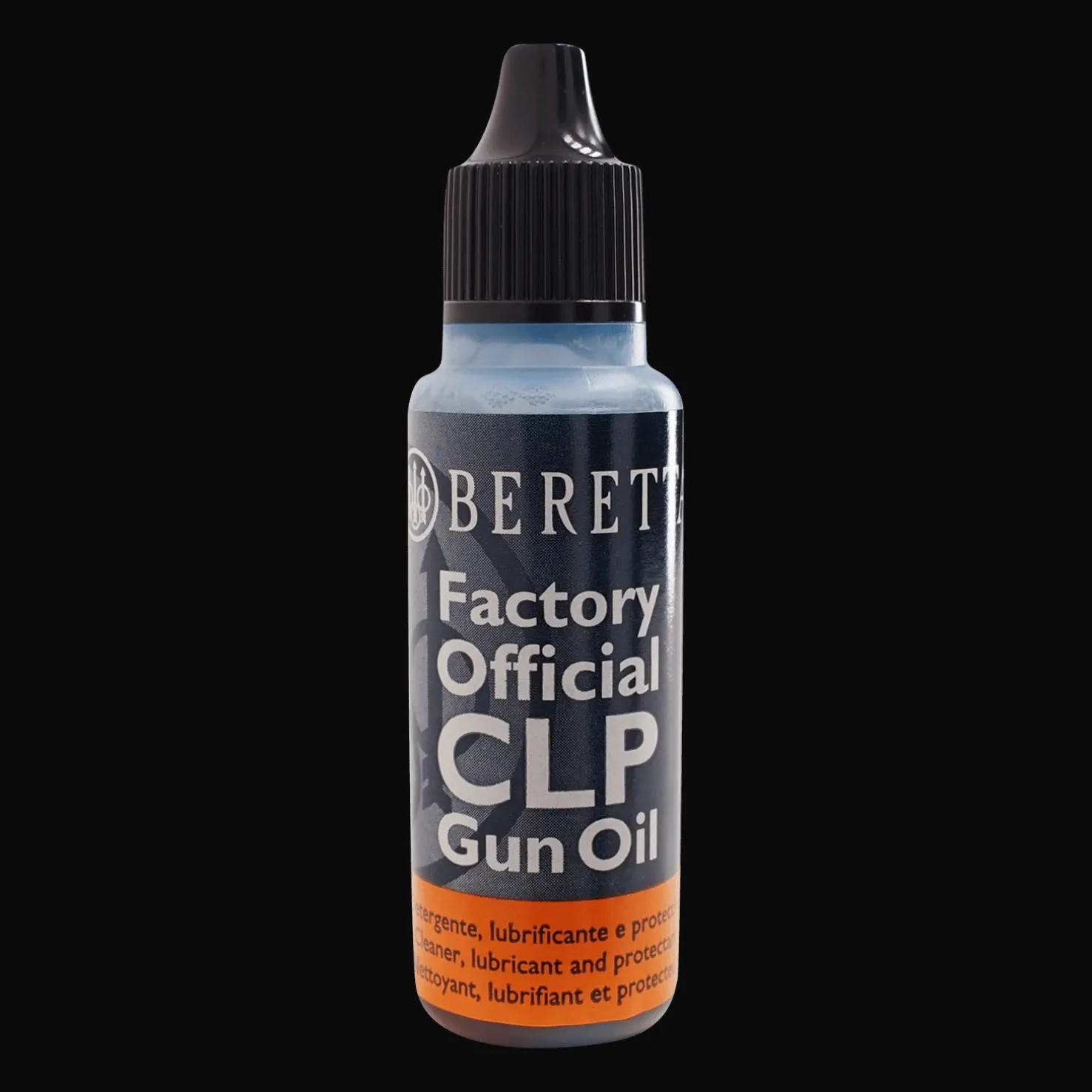 Aseöljy, jolla on kolme toimintoa, puhdistaa, voitelee ja suojaa lialta ja hapettumiselta. Beretta käyttää sitä koko tuotantoprosessin ajan. Tilavuus: 25 ml.