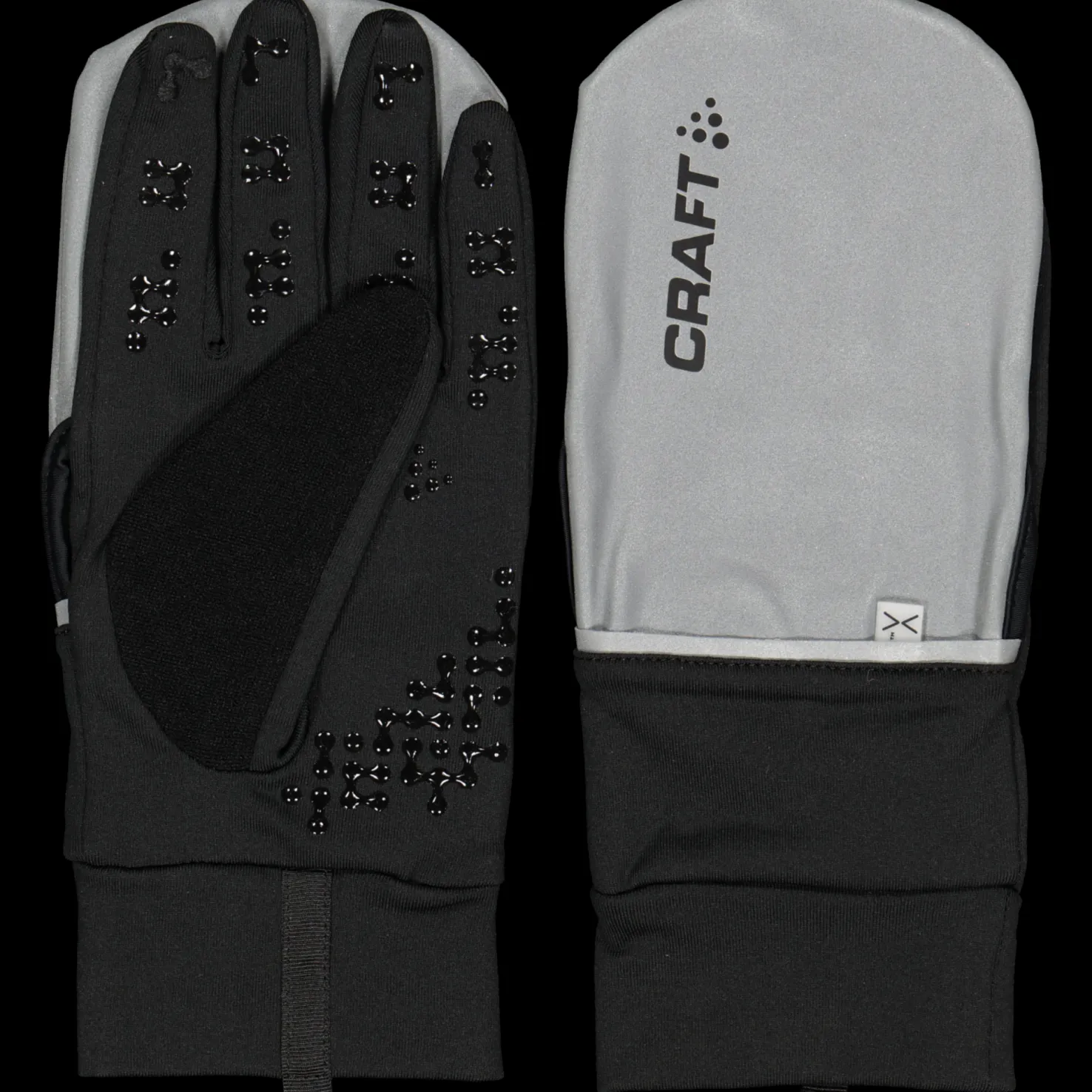 Hanskat on helppo muuttaa lapasiksi, jolloin käsine täyttää useita eri käyttötarpeita. Tuulta ja vettä hylkivä sormisuojus, joka auttaa pitämään kädet kuivina sateisella säällä. Käytännöllisiä heijastavia yksityiskohtia.