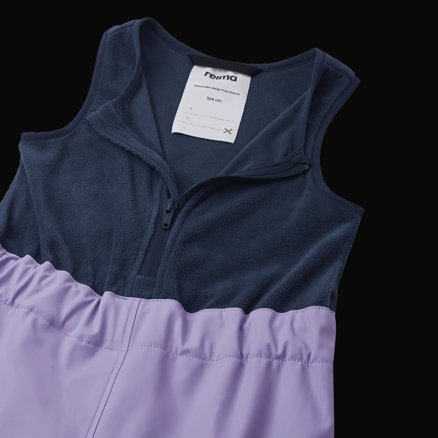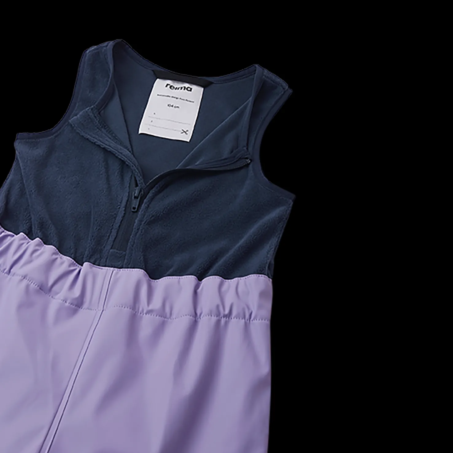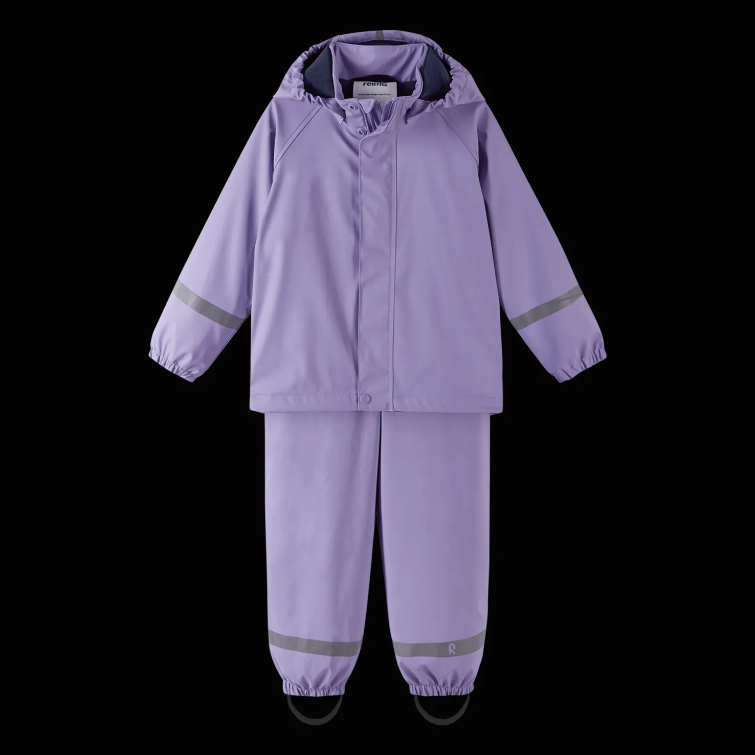 Reima Jokela sopii täydellisesti hieman viileämpinä ja sateisina päivinä. Sadeasun sisällä on fleecevuori, joka lämmittää ja tekee asusta mukavamman. Housujen yläosassa on fleeceä ja niissä on edessä vetoketju lisäsuojaa varten, samalla kun ne istuvat hyvin päällä.