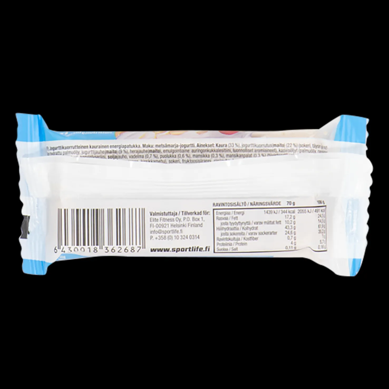 Jogurtti-metsämarja: Näringsinnehåll 70g / 100 g: Energi: 1439 kJ / 344 kcal 2055 kJ / 491 kcal