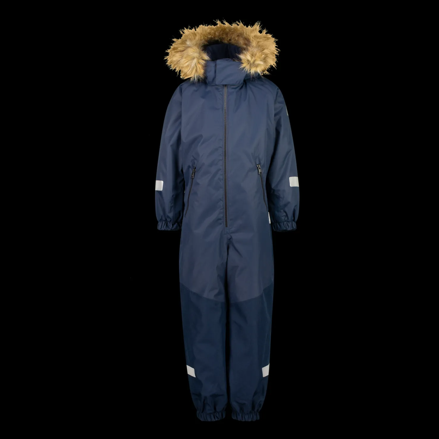 Heijastavat yksityiskohdat parantavat näkymistä pimeällä. Leveä tarranauhasäätö kaulassa tekee haalarista suojaavamman.