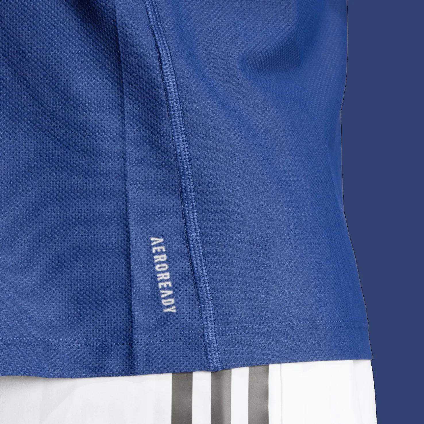 T-paita on valmistettu kierrätetystä materiaalista, mikä on osa adidaksen pyrkimyksiä vähentää muovijätettä.