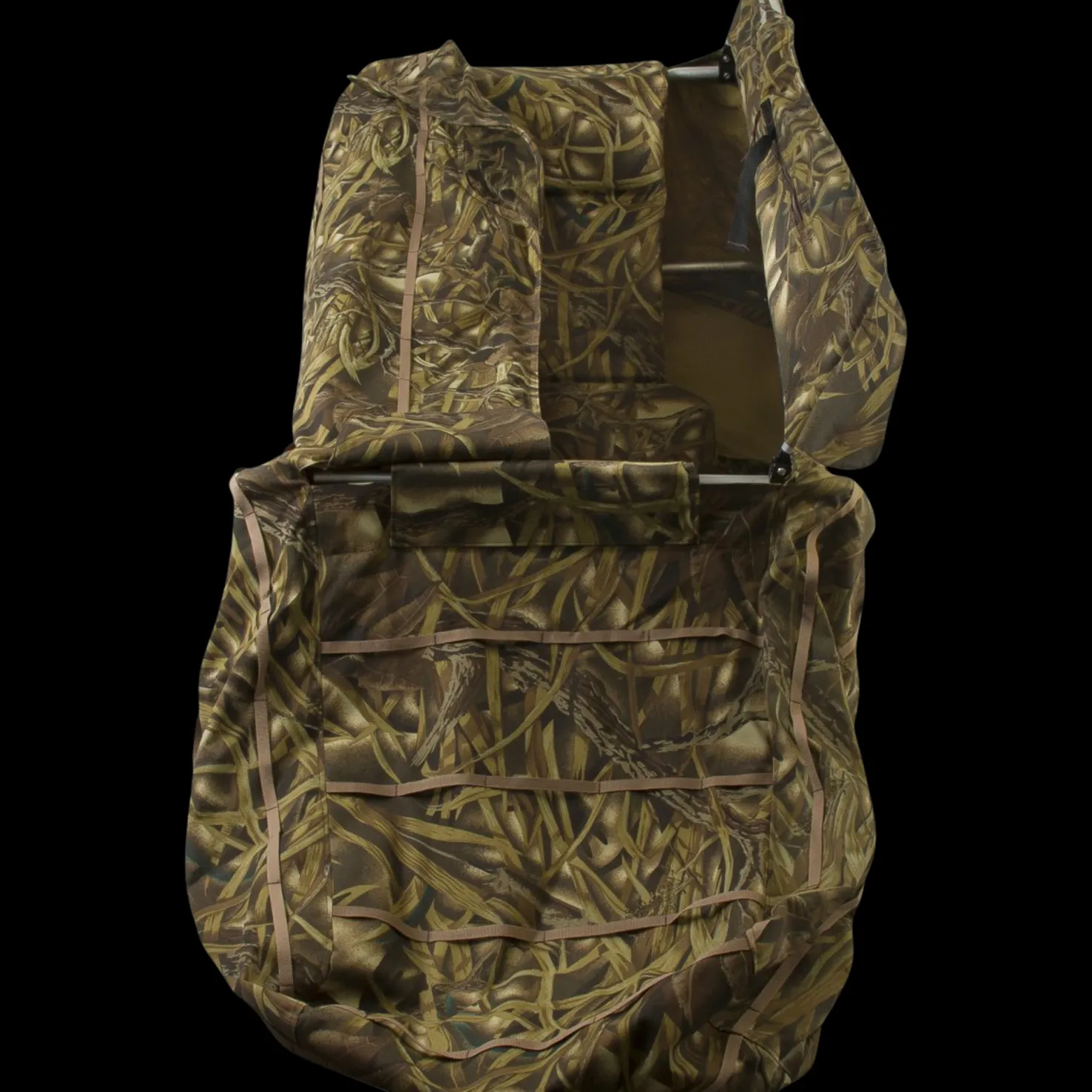 Pop-up camo-teltta hanhi- ja sorsajahtiin. Tässä istut mukavasti lintuja kyttäämässä. Camo-teltasta voit nopeasti nousta istuvaan ampuma-asentoon lintujen lähestyessä. Se, että kädet ja pää on vapautettu houkutuspillin ja vastaavan käyttöä varten on erityisen kätevää. Kätevä taittaa kasaan ja kantaa selässä.