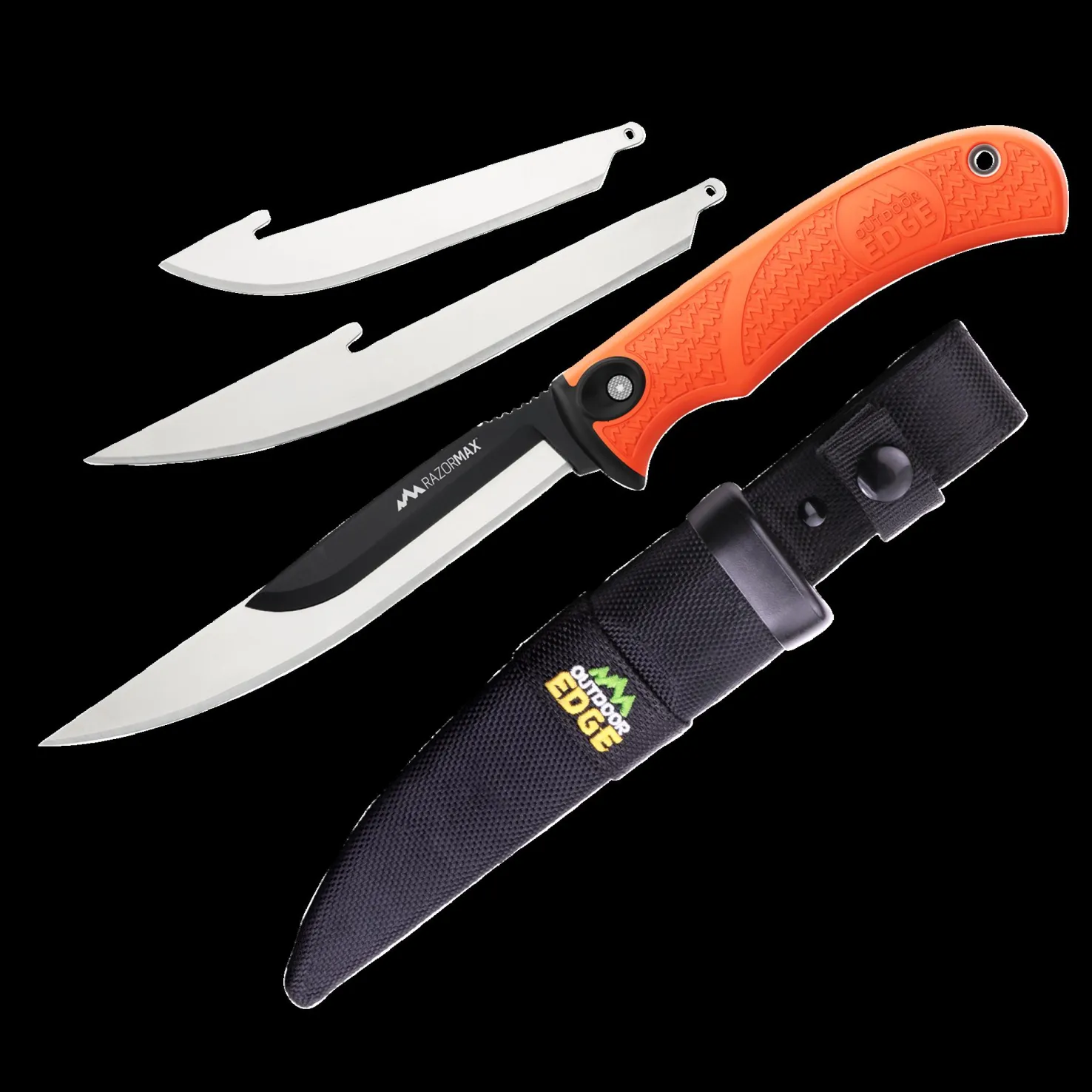 Razormax™ on monikäyttöinen metsästys- ja paloitteluveitsi, mukana kuusi vaihtoterää. Kumitettu varsi istuu hyvin käteen, hyvä pito myös märkänä.