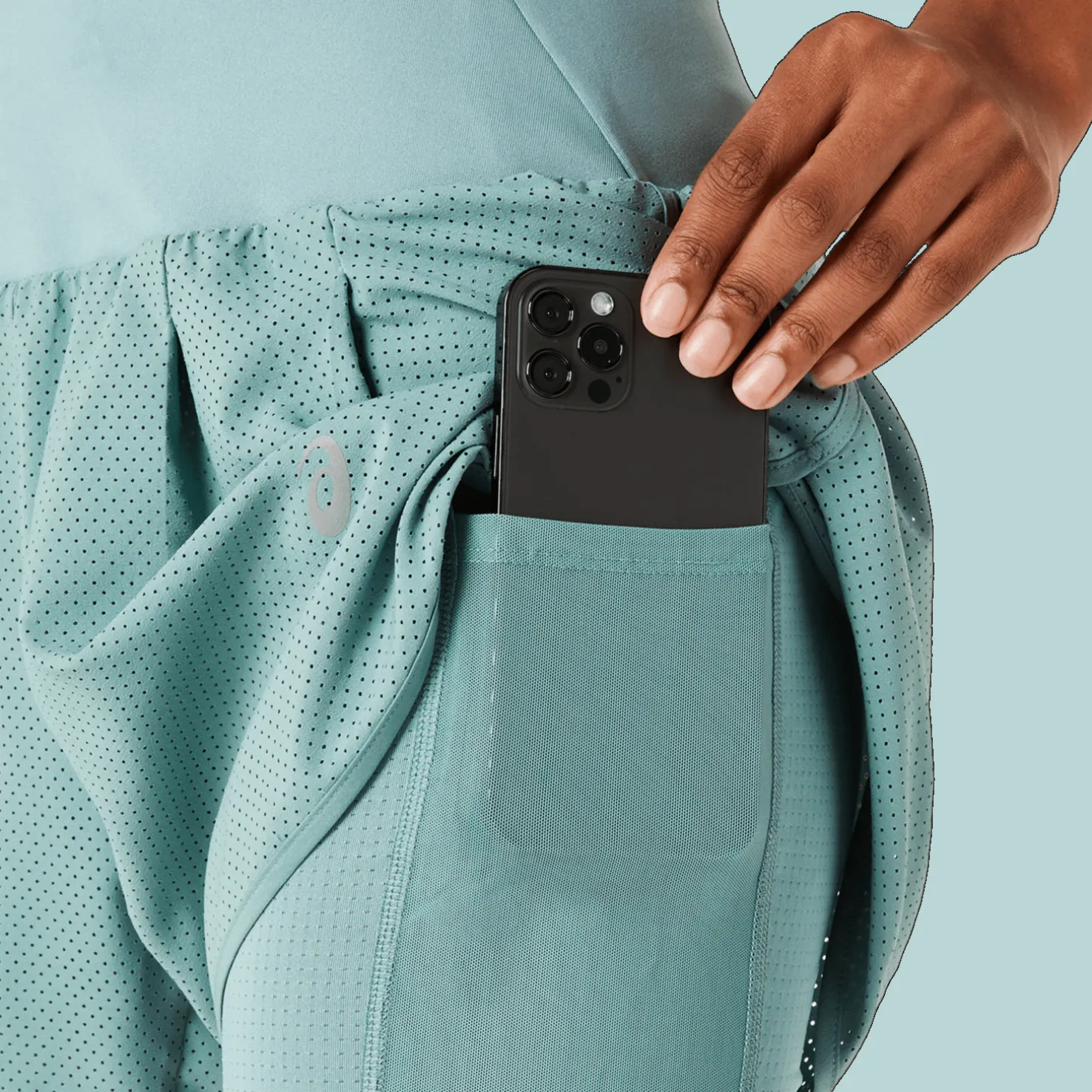 Vyötäröllä monta kätevää taskua, joissa voit säilyttää henkilökohtaisia tavaroitasi liikunnan aikana. Taskujen lisäksi shortsien takana on joustava lenkki, jossa voit säilyttää esimerkiksi takkia tai pyyhettä.