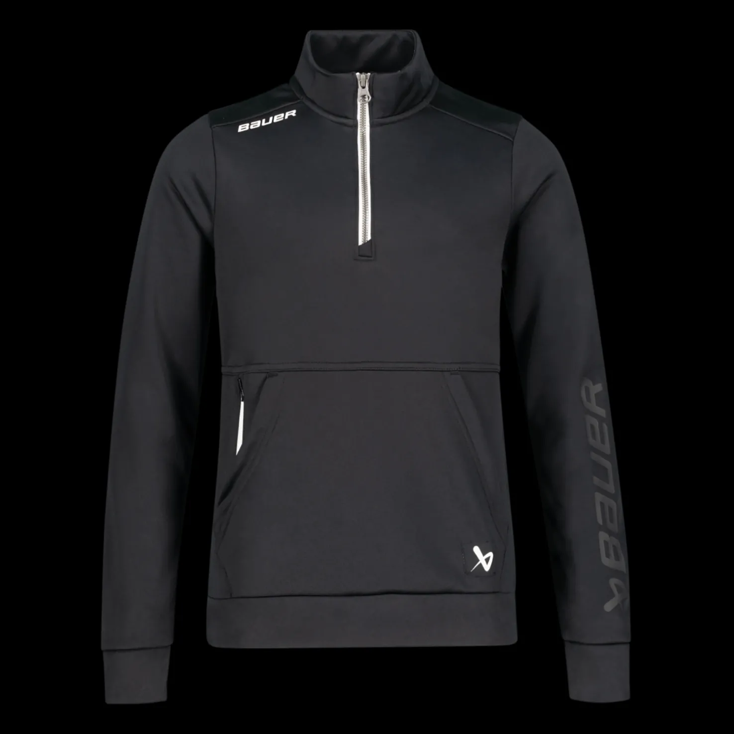 Bauer S23 Team Fleece 1/2 Zip -paidassa on tyylikkäät Bauer-yksityiskohdat toisella olkapäällä ja selässä. Kestävä YKK-vetoketju pääntiessä ja vetoketjullisessa piilotaskussa.