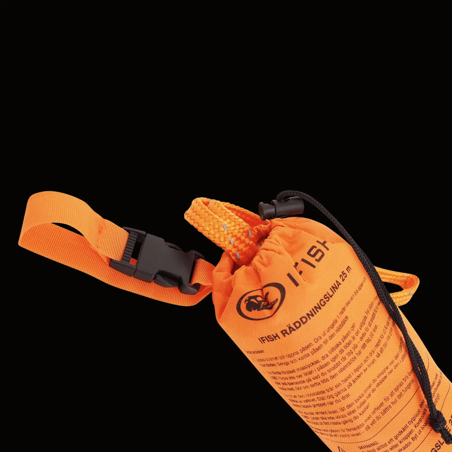 25 metrin pelastusliina, jonka päässä on hyvä paino, mikä helpottaa sen heittämistä. Kassi ja köysi on varustettu heijastavilla yksityiskohdilla.