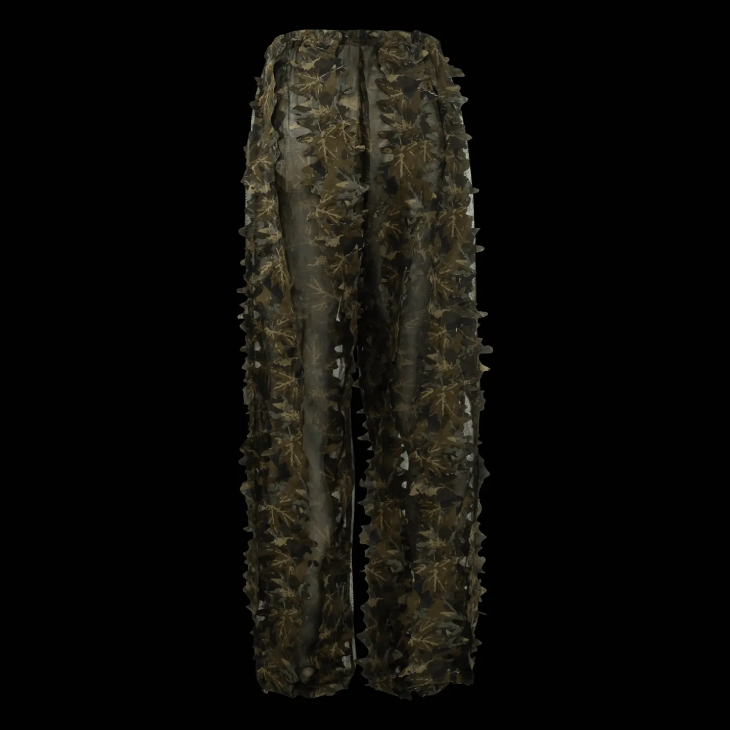 Kevyet maastokuvioiset housut, jotka pitävät vain vähän ääntä liikuttaessa. Kevyet ja vievät vain vähän tilaa. 3D-maastokuviointi ja joustava vyötärö. Yksi koko.