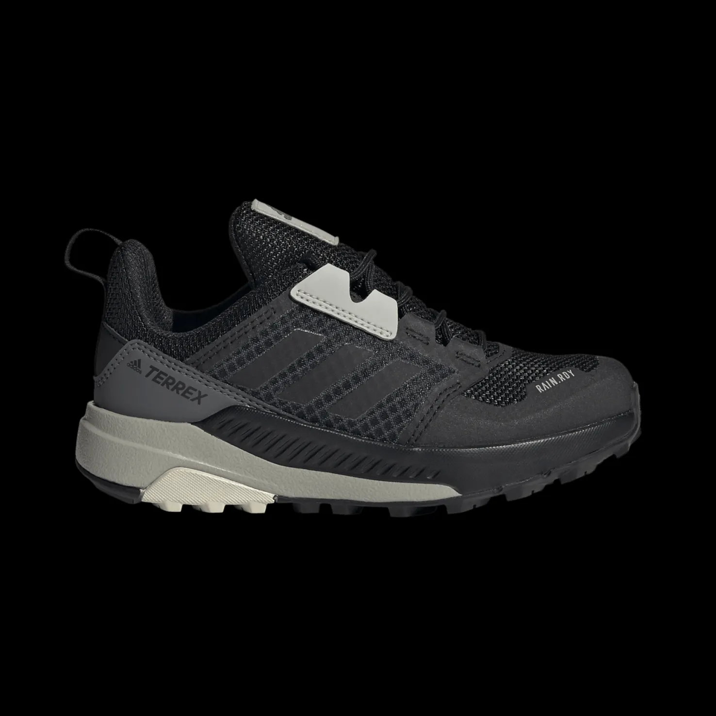 Adidas Terrex Trailmaker RAIN.RDY -vaelluskengät tuntuvat kevyiltä ja mukavilta jalassa ja ne muistuttavat lenkkareita. Klassinen suljenta, jossa nauhoitus.