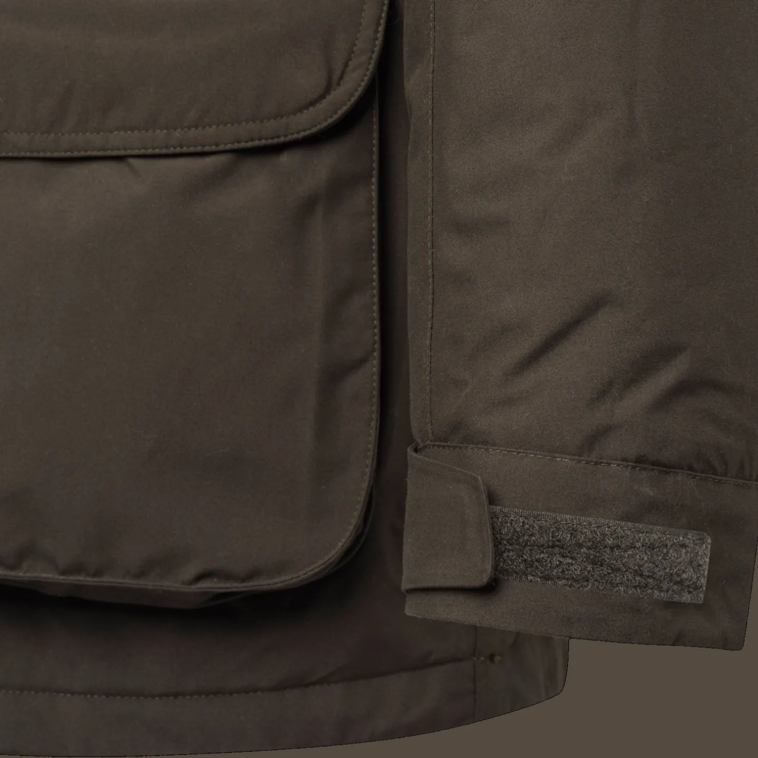 Vedenpitävä, hengittävä metsästystakki, jossa on joustavat paneelit liikkumisvapauden takaamiseksi. Suunniteltu metsästykseen, jossa täytyy olla hiljaa ja pysyä kuivana.