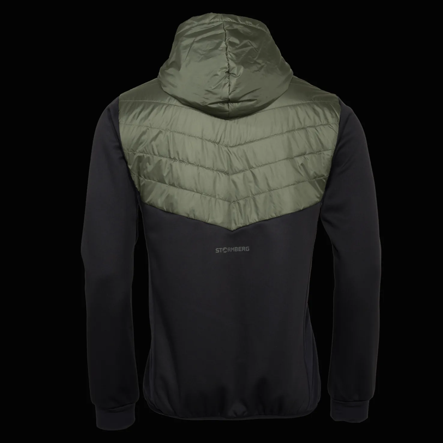 Tekninen hybriditakki, jossa on vettä hylkiviä ominaisuuksia ja eristävä vaikutus. Kolme vetoketjullista taskua ja kiinteä huppu. Joustopaneelit sivuilla ja takana.
