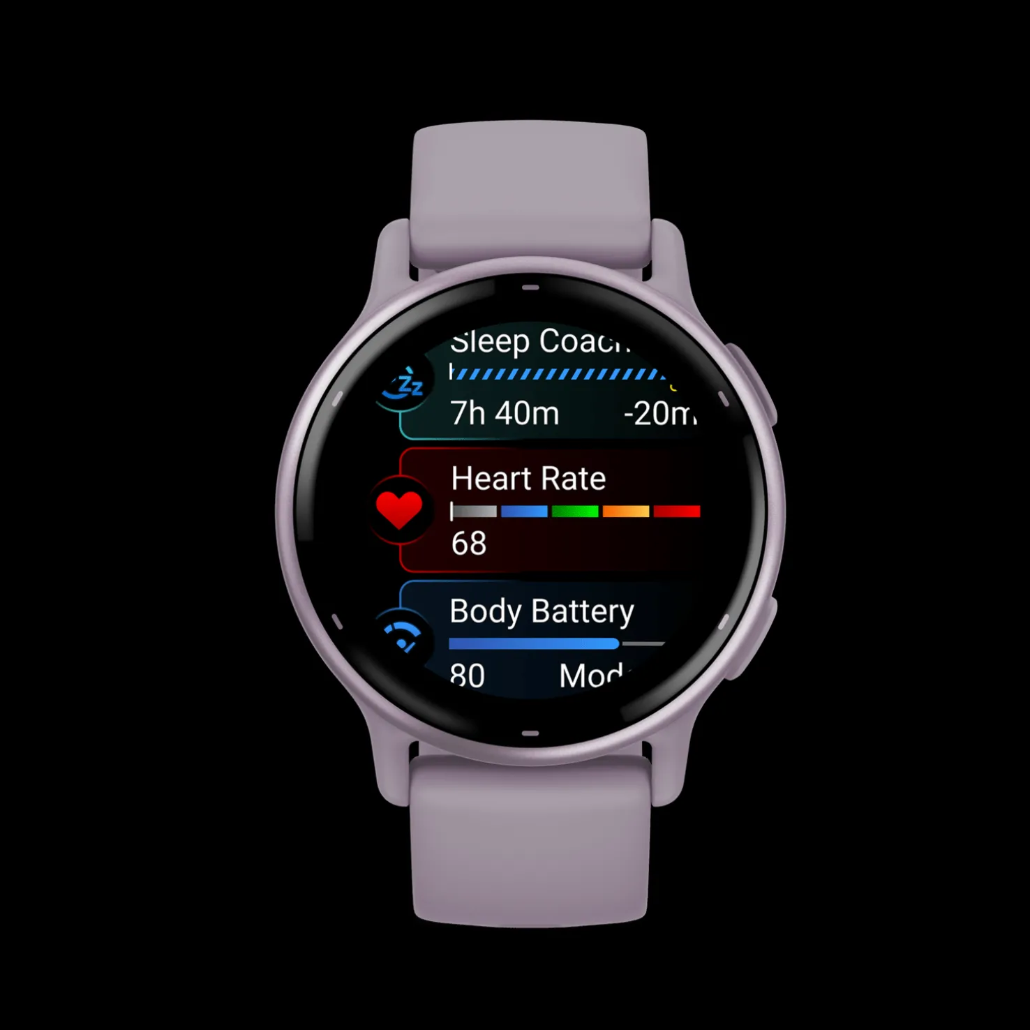 Body Battery -energiamittaus näyttää, milloin olet energinen tai haluat rentoutua, ja entistä henkilökohtaisempia tietoja, jotka perustuvat uneen, torkkuihin, stressitasoihin, harjoituksiin ja muuhun (esitetyt tiedot muodostavat arvion seurattavista mittauksista).