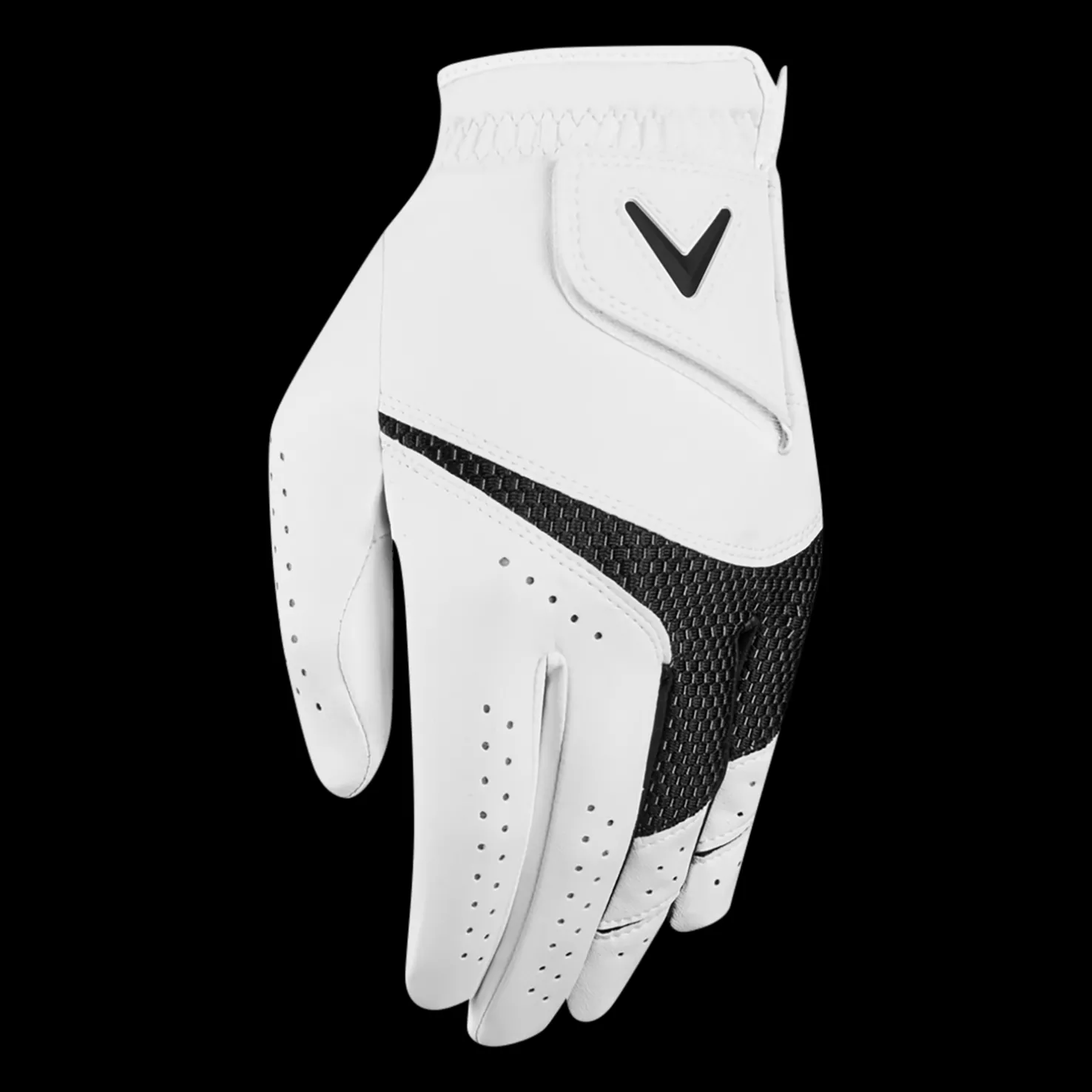 Callawayn Weather Spann -käsineessä on nahkaa kämmenessä ja peukalossa, mikä takaa optimaalisen pidon ja kestävyyden.