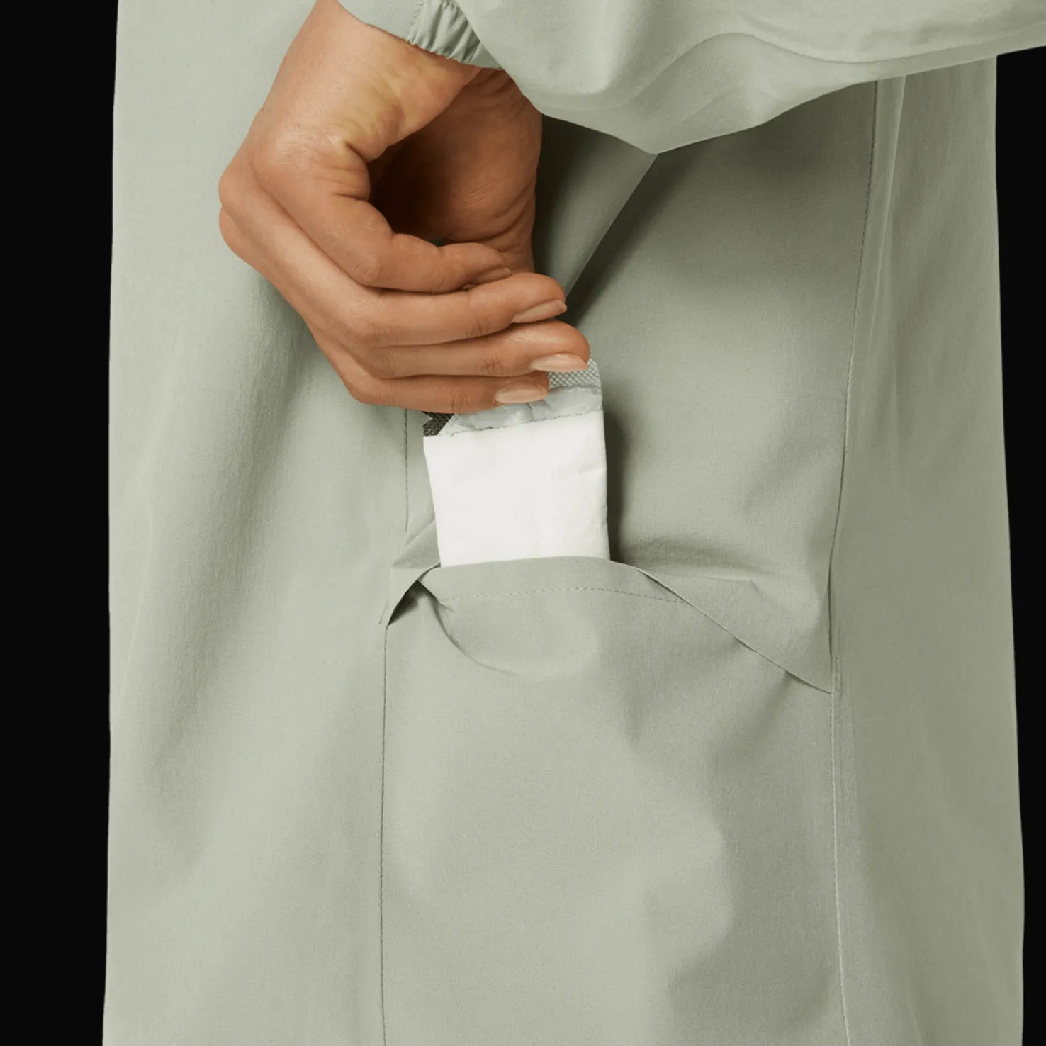 Treenitakin saumat on sinetöity ja se on valmistettu edistyksellisestä 2,5-kerroksisesta kankaasta, joka on suunniteltu suojaamaan sinua vedeltä ja tuulelta harjoituksen aikana siirtäen samalla kosteutta pois.