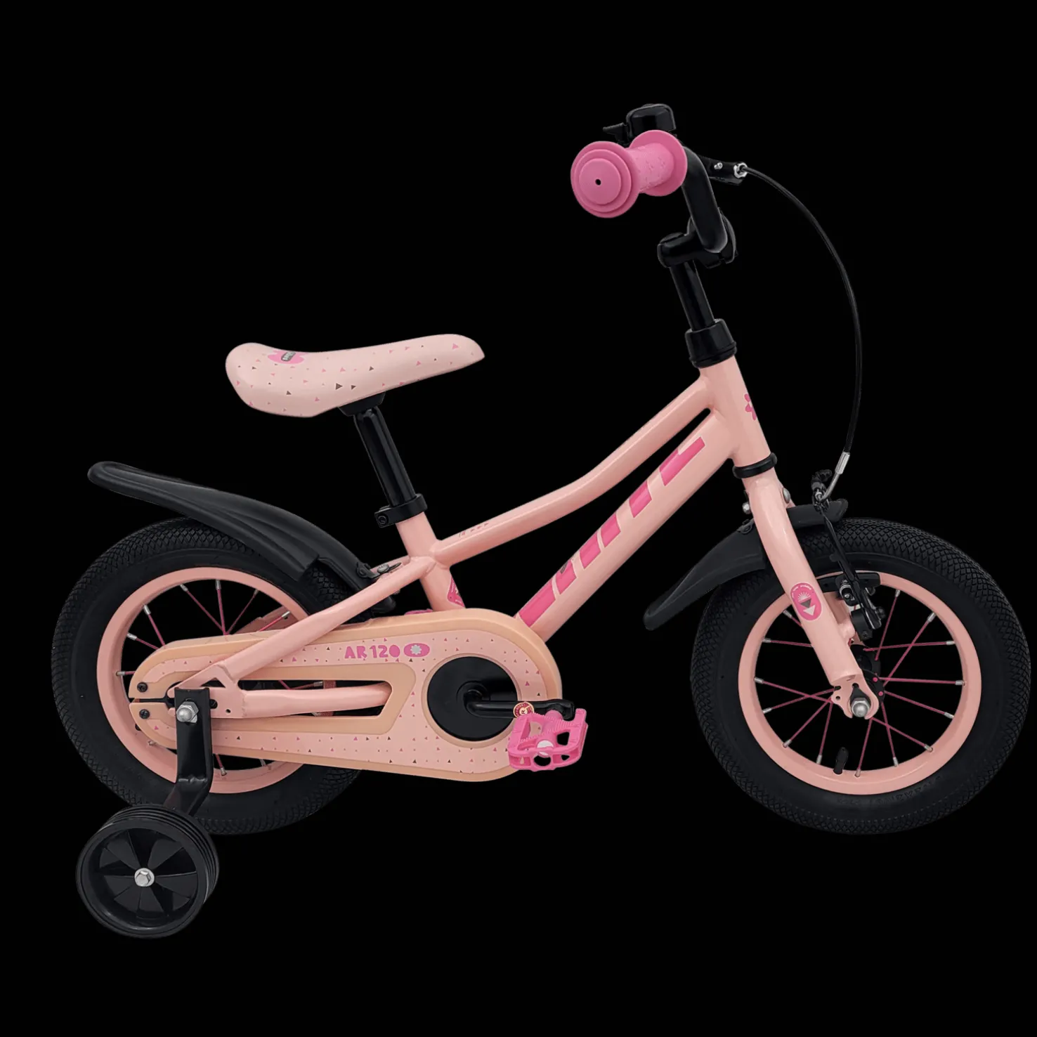 Upea helppokäyttöinen lasten pyörä, joka on lähes täysin huoltovapaa. Tukeva teräsrunko, jossa uusi geometria matalammalla painopisteellä, joka tekee pyörästä entistä vakaamman. Helppokäyttöinen jalkajarru takapyörällä, vannejarru edessä. Mukana ketjusuoja, lokasuojat, soittokello ja apupyörät. Paino: 9 kg.