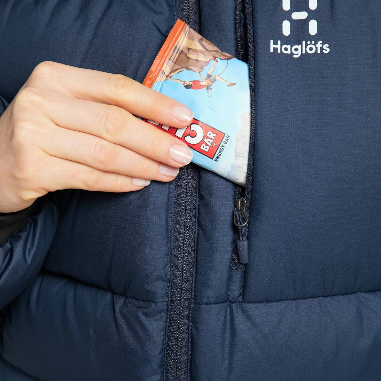 Belay Down Hood Women -takissa on untuvaeristys ja synteettinen eristys erityisen alttiilla alueilla. Molemmilla puolilla vetoketjutasku ja suurempi rintatasku kätevää säilytystä varten.