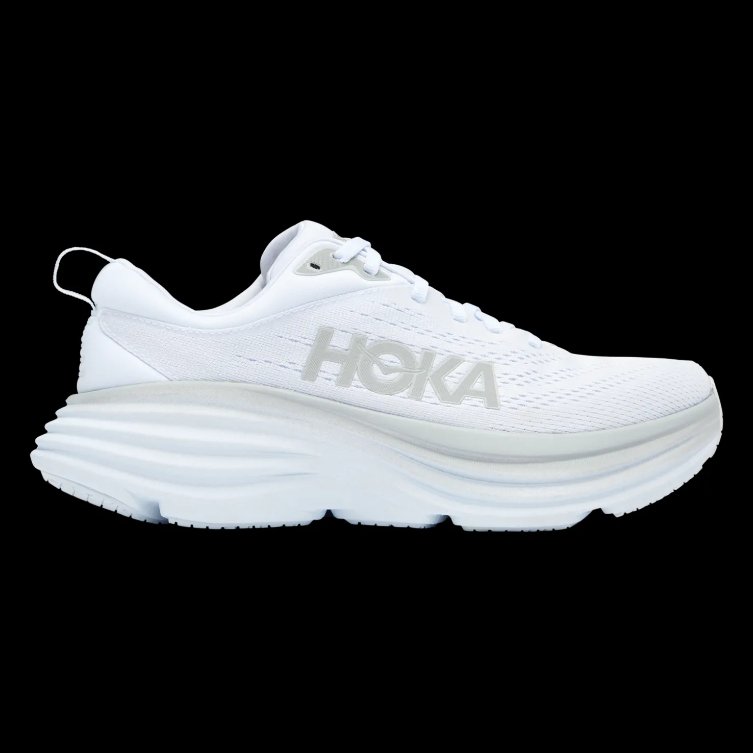 HOKA Bondi 8 on valmistettu 100 % vegaanisesta verkosta, joka antaa sinulle hyvän ilmanvaihdon juoksun aikana. Kieli tuntuu mukavalta nilkan kohdalla ja kantakappa lukitsee kantapään hyvin niin, että jalka pysyy paikallaan.