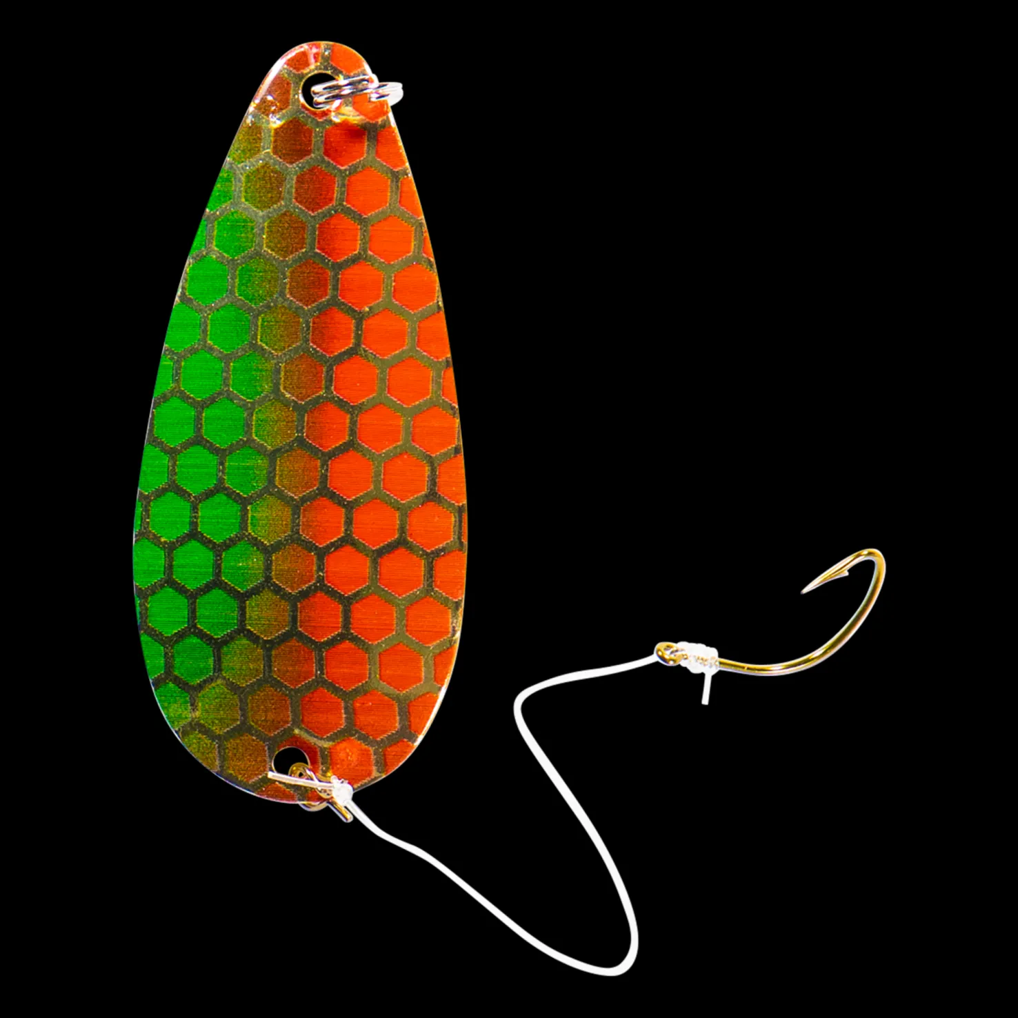 Houkutteleva rautu-uistin, jossa perinteinen kuparikuvio. Toimitetaan täydellisenä syöttikoukulla varustettuna. Pituus: 60 mm. Paino: 13 g.