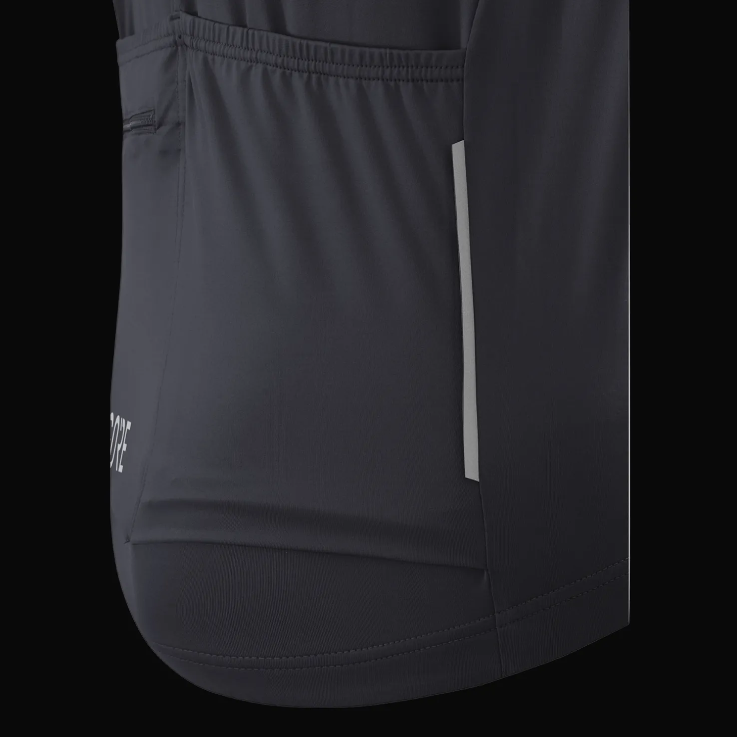 C5 Opti Jersey -pyöräilypaidassa on kolme taskua sekä vetoketjutasku selässä. Pidennetty selkä, jonka nurjalla silikonireunus.