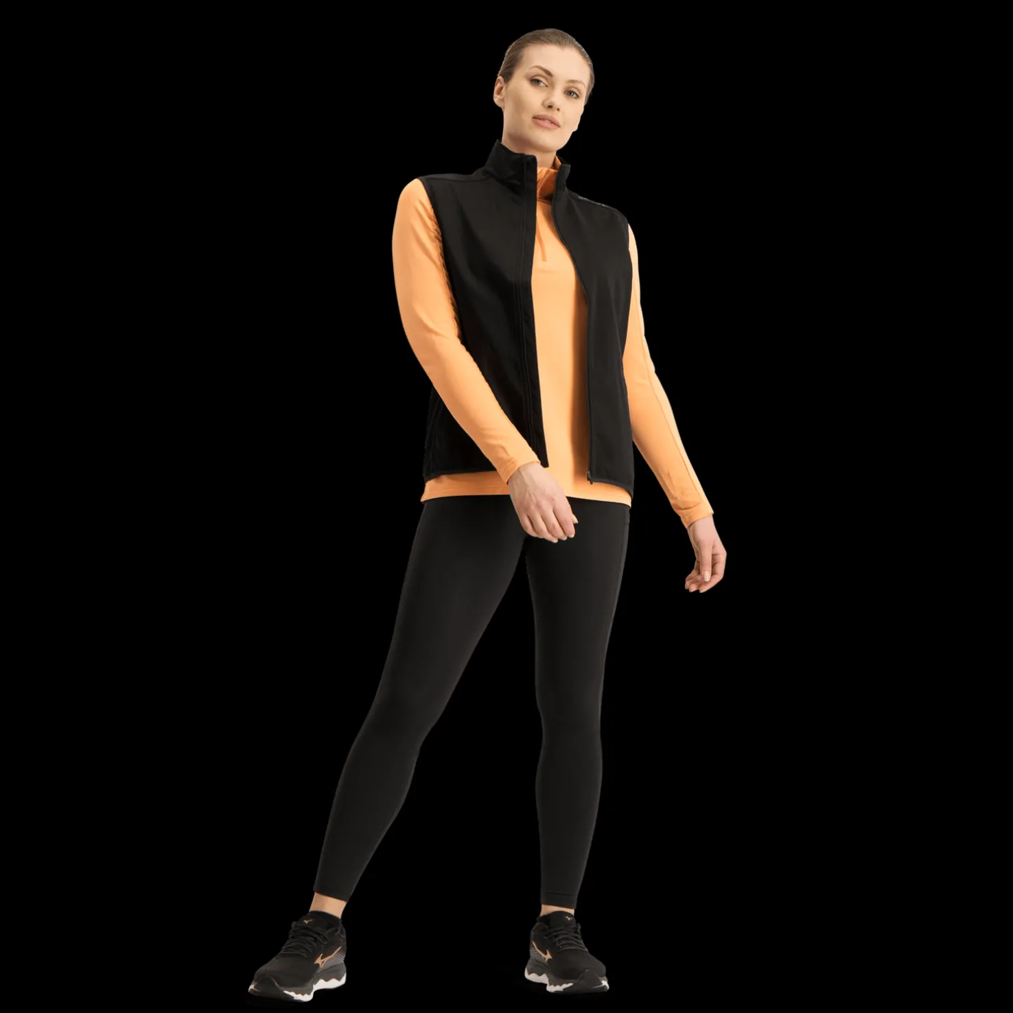 Mukava liivi joustavilla sivupaneeleilla harjoitteluun viileinä päivinä. Taskut säilytystä varten. Korkea kaulus suojaa kylmältä. Normaali malli.