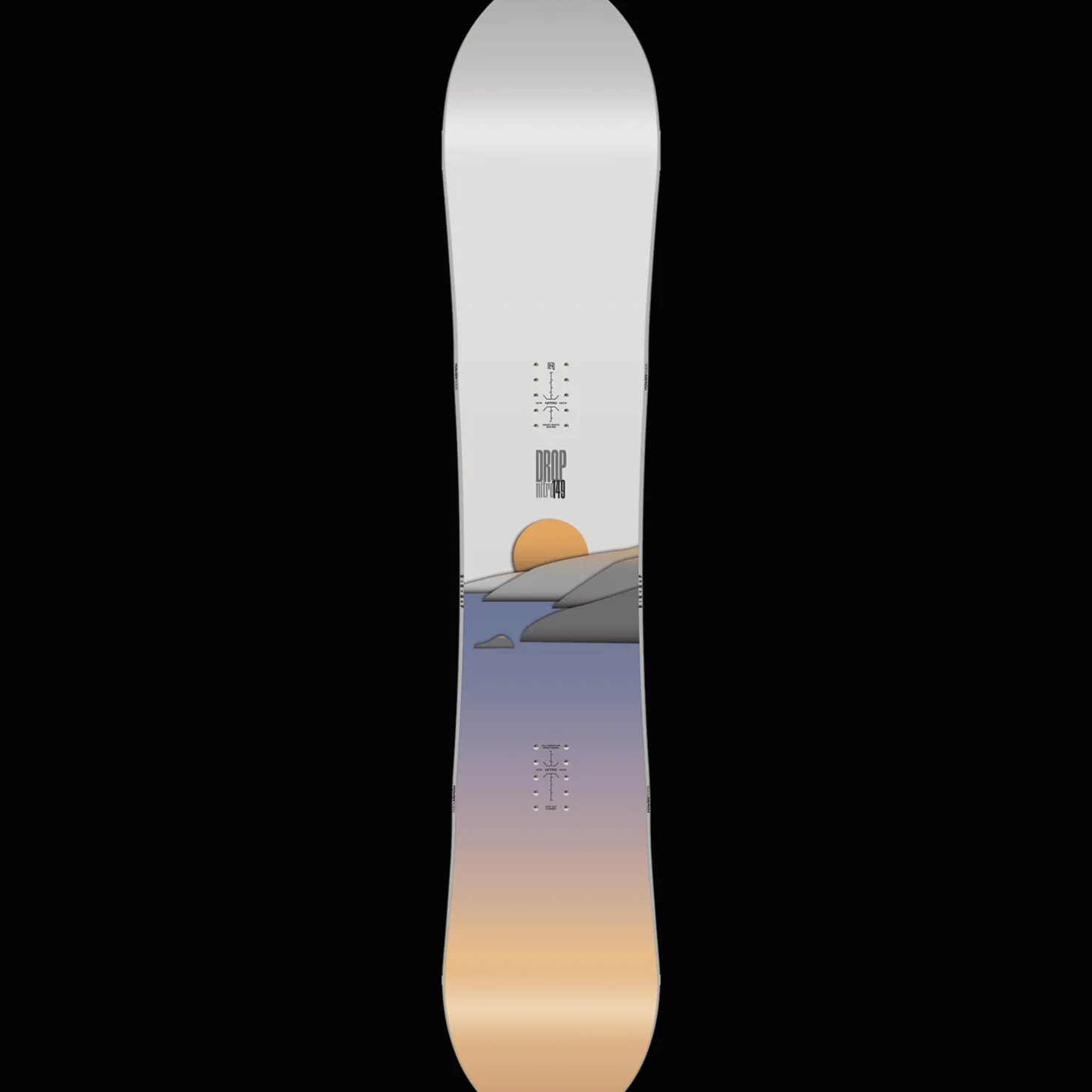 Nitro Drop on suunniteltu erityisesti luoville lautailijoille, tekemään jokaisesta käännöksestä ikimuistoisen ja hauskan muotonsa ansiosta. Old-School -muotoilu ja laudan iso kärki kelluttaa hyvin puuterilumella.