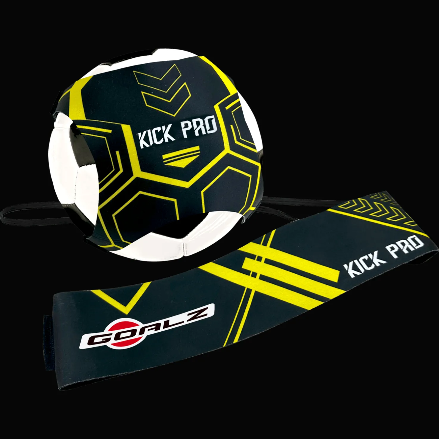 Goalz Football Kick Pro on jalkapallon harjoitusvyö, jossa on kuminauha, johon voit kiinnittää jalkapallosi parantaaksesi potkutekniikoitasi, liikkuvuuttasi ja voimaasi.