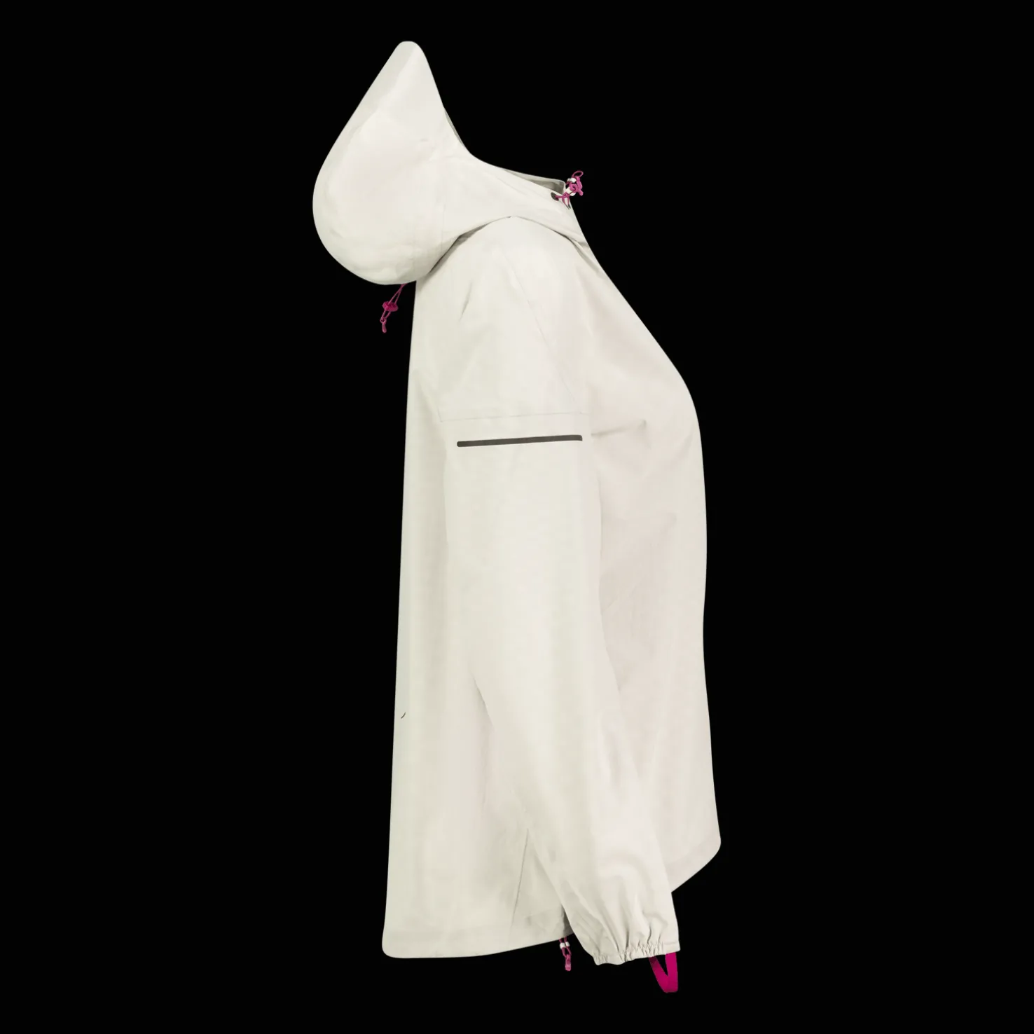 Vedenpitävä, tuulenpitävä ja mukava juoksutakki, jossa säädettävä ja tekninen huppu. Voidaan kääriä rintataskuun. Peukaloaukot. Heijastinsomisteet. Normaali istuvuus.