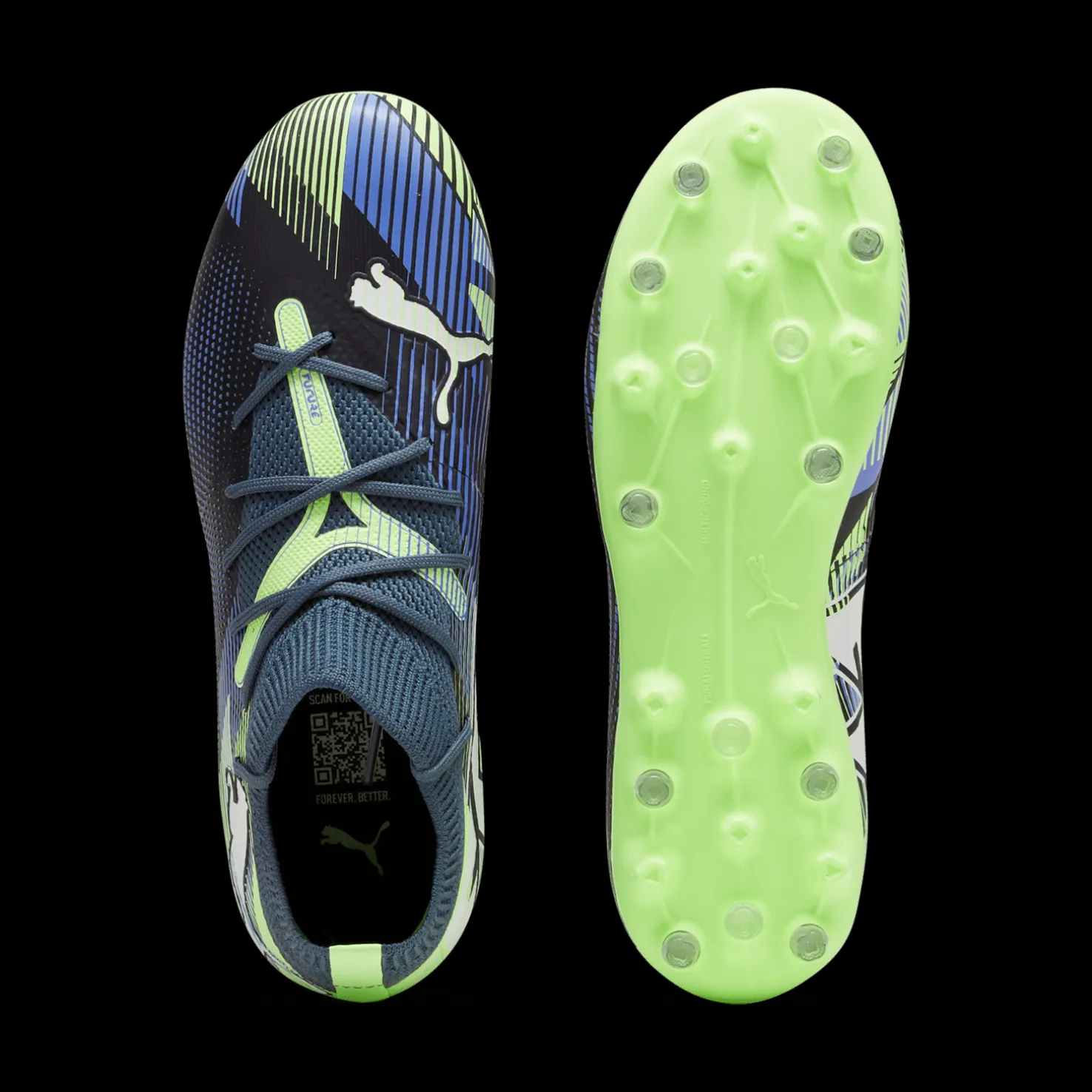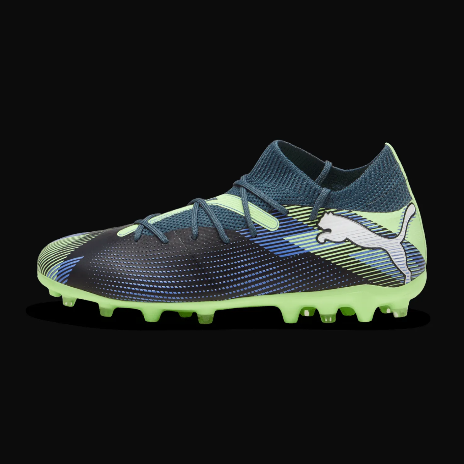 Jalkapallokengät, joissa on MG-nappulat teko- ja luonnonnurmelle. Innovatiiviset 3D-tulostetut yksityiskohdat keskeisillä alueilla optimaalisen pallonhallinnan varmistamiseksi.