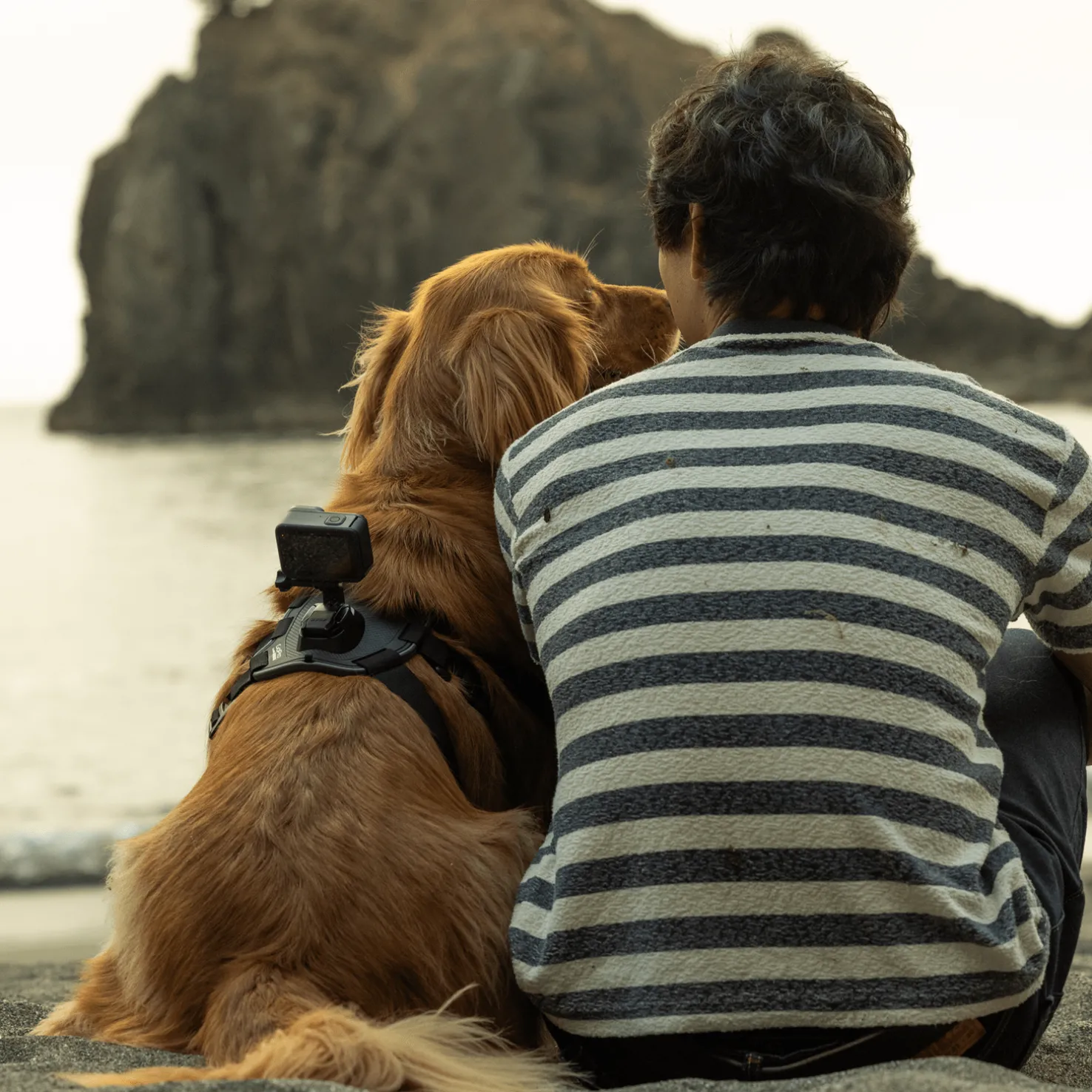 Näe maailma koiran silmin. Selkään ja rintaa tarkoitettu kamerakiinnitin, jonka ansiosta voit valita, haluatko kuvata jalkoja, kaivamista tai näkymää pään tai tassujen kohdalta.