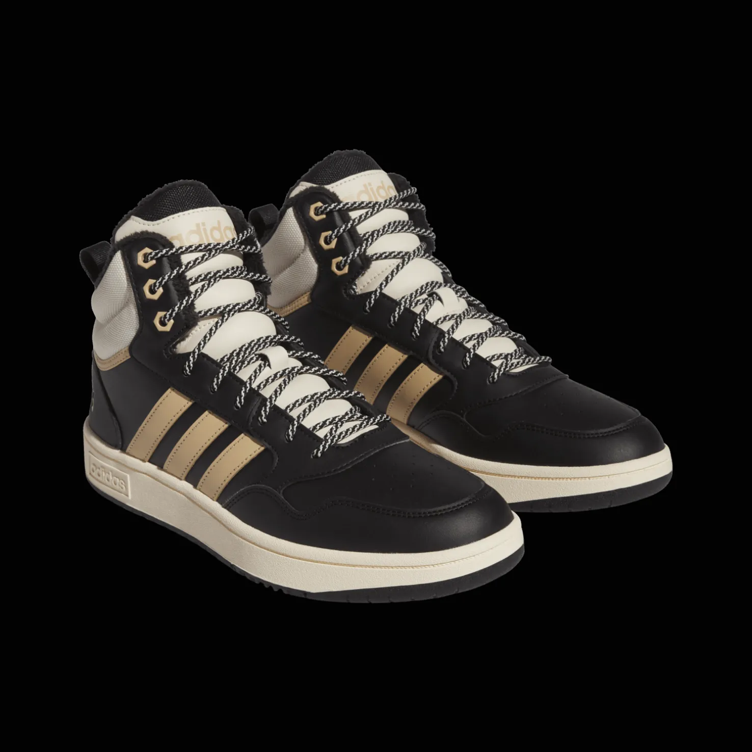 Adidaksen Hoops 3.0 MID WTR -kengissä on koripallotyylinen ilme ja ne peittävät hyvin nilkan. Kengissä on sisällä kangasvuori, joten ne pitävät sinut lämpimänä viileinä päivinä.