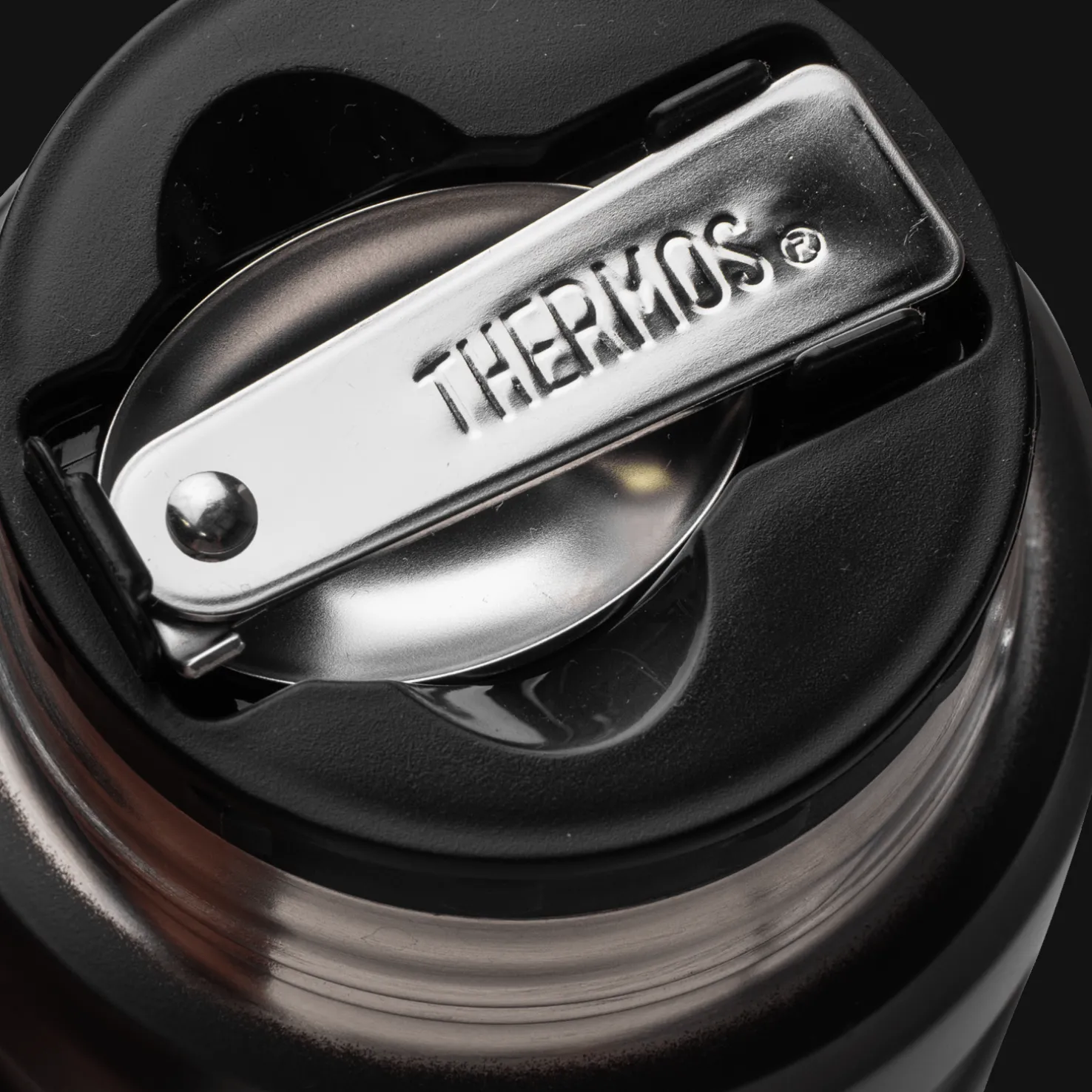 Thermos Stainless King 470 ml -termospullo on muotoilultaan ajaton ja valmistettu ruostumattomasta teräksestä