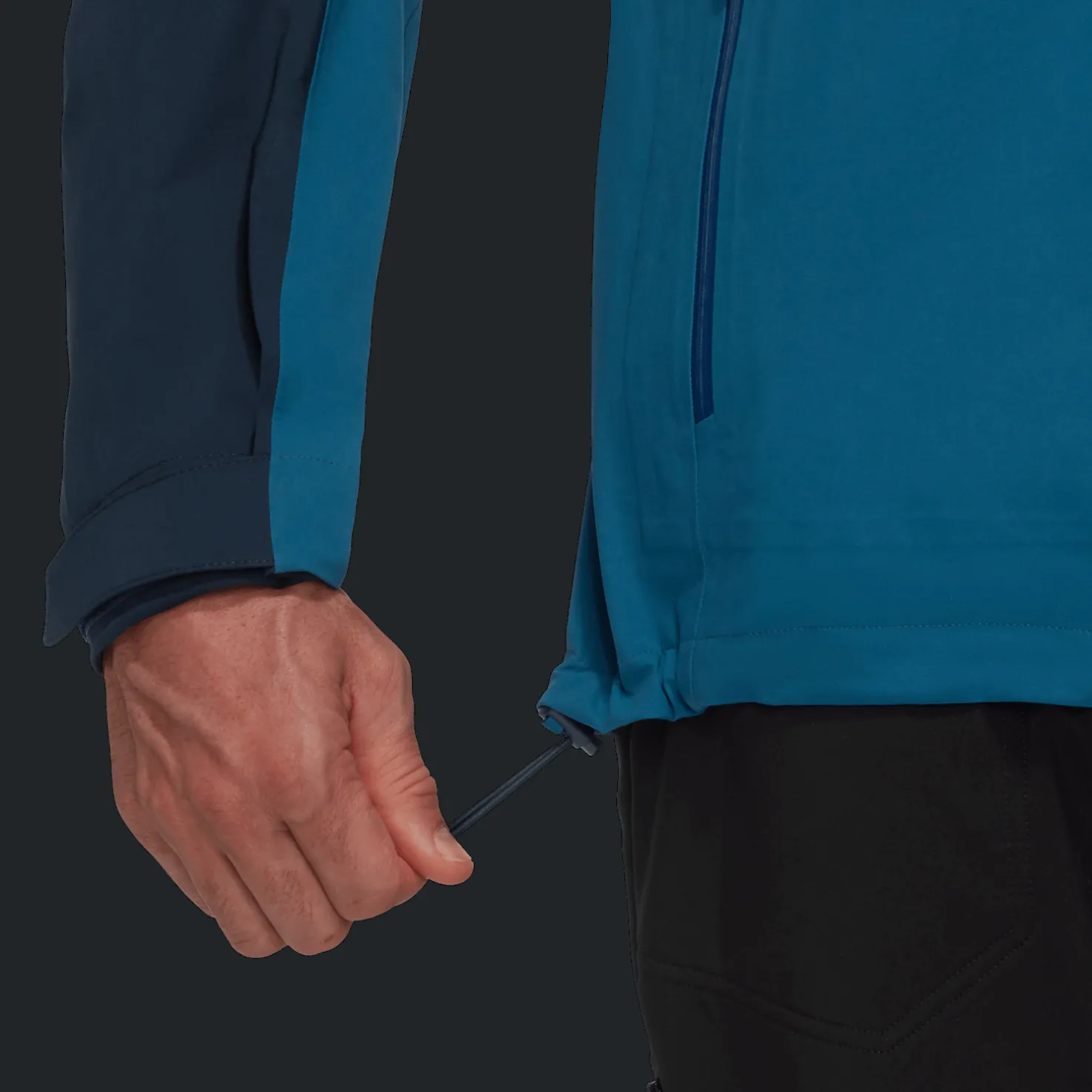 Tarranauhoilla säädettävien hihansuiden avulla takin istuvuuden voi säätää optimaaliseksi.