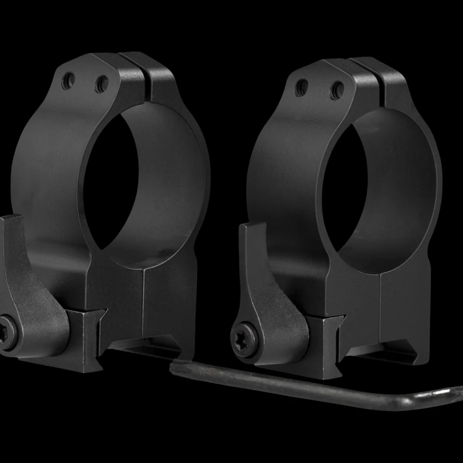 Warne Maxima kiikaritähtäimen kiinnitysjalat pikalukolla Weaver -kiskoon. 30 mm runkoputkelle ja n. 50-56 mm etulinssin halkaisijalle.