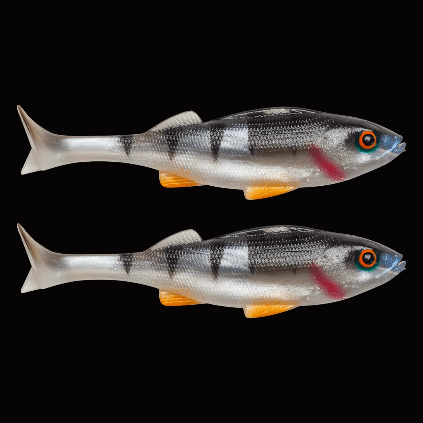 Softbait, joka on suunniteltu jäljittelemään aitoa ahventa. Erittäin todenmukaiset uintiliikkeet ja muoto, jotka on räätälöity petokalojen kalastukseen. Ulkoevät ja käsinmaalatut väriyksityiskohdat.