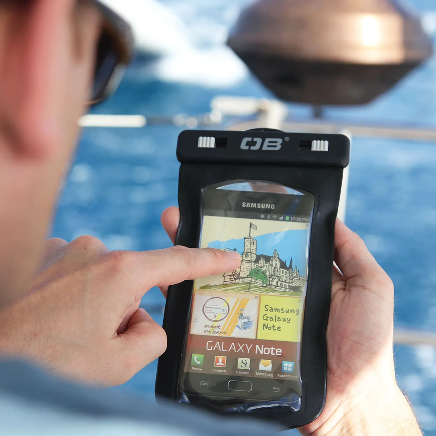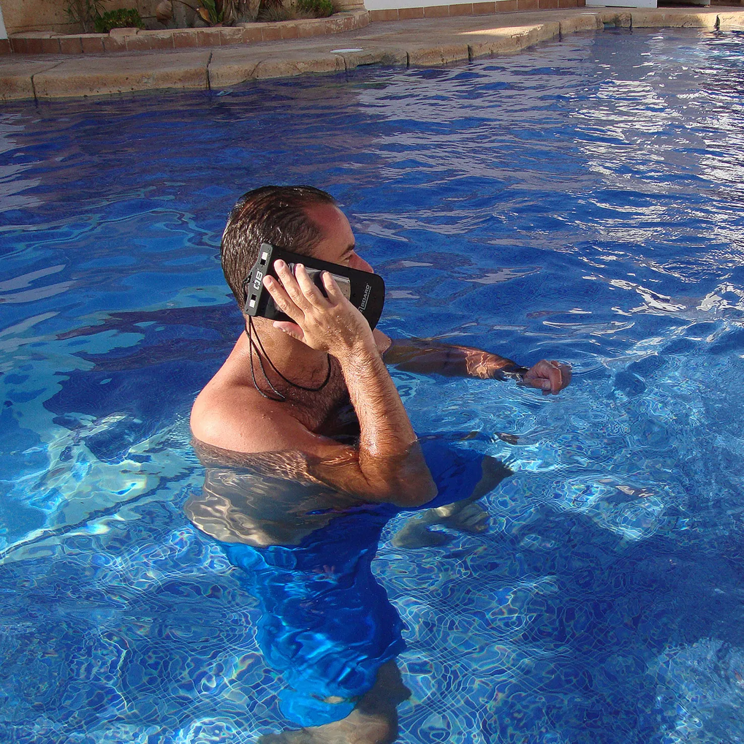 Suojakotelon etuosa on läpinäkyvä, joten voit jatkaa puhelimen käyttöä vedessä.