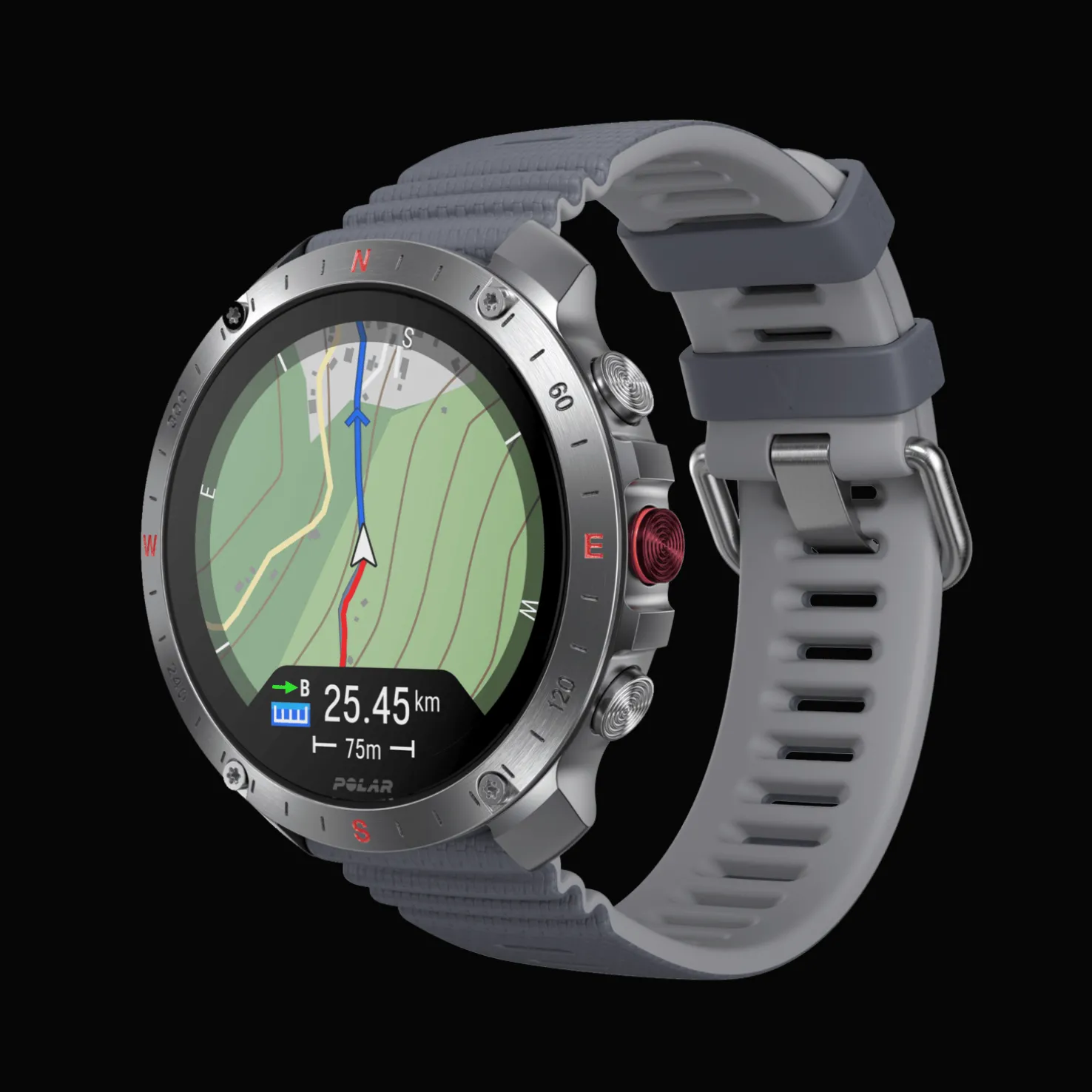 Polar Grit X2 Pro on kestävä, vahva ja armeijatason multisport-kello, joka antaa tutkimusmatkailijoille ja seikkailijoille huipputekniset työkalut, joiden avulla he voivat navigoida ja suoriutua missä tahansa ympäristössä ehdottoman luottavaisin mielin. Kaksitaajuuksiset GPS- ja offline-kartat varmistavat, ettet koskaan eksy, ja naarmuuntumattomasta safiirikristallista ja ruostumattomasta teräksestä valmistetuilla kehyksillä suojattu korkearesoluutioinen AMOLED-kosketusnäyttö näyttää tärkeät tiedot selkeästi haastavimmissakin olosuhteissa.