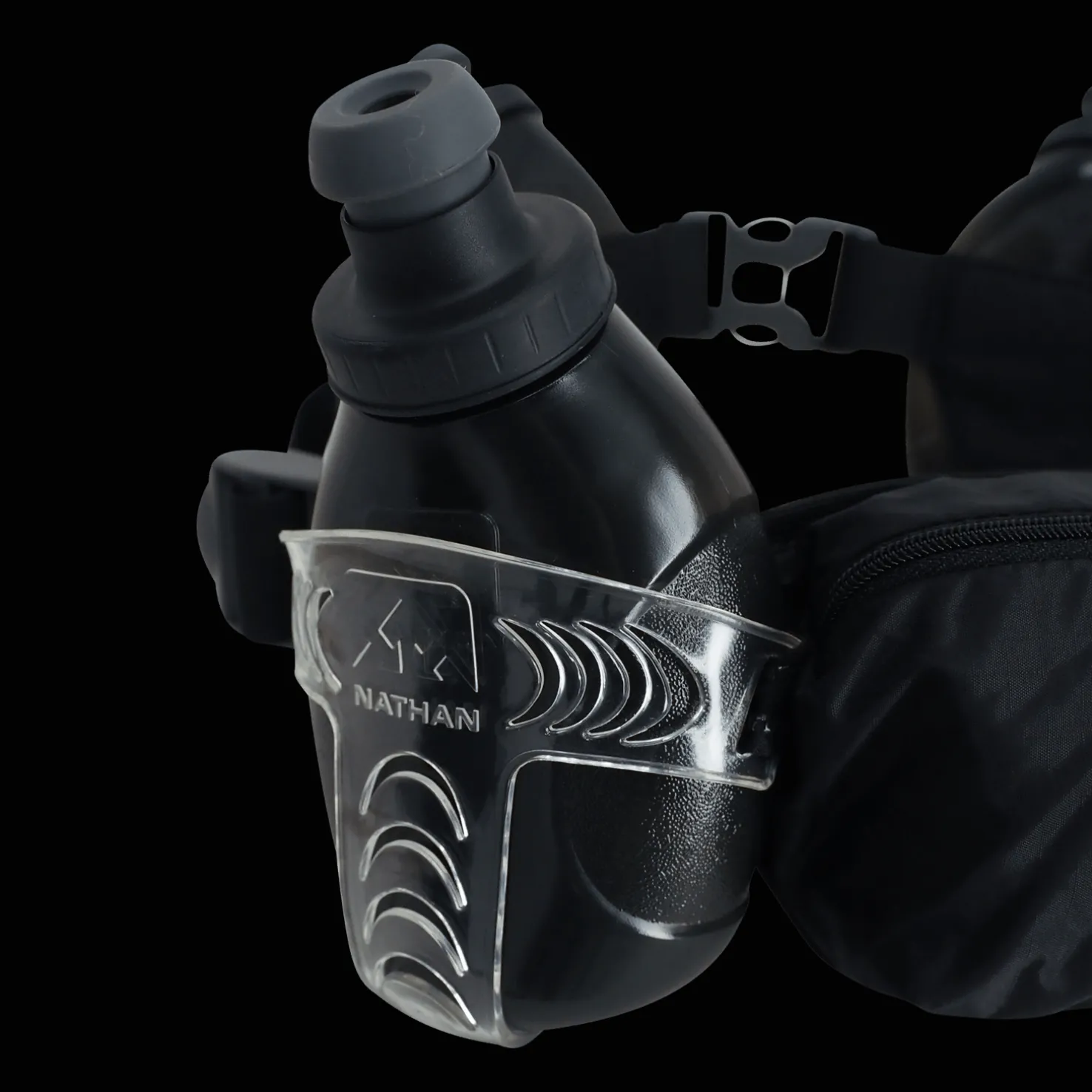 Juomavyö ja neljä 300 ml:n juomapulloa, joihin mahtuu yhteensä 1,2 litraa juomaa. Vyössä on takana iso tasku puhelimelle, avaimille ja muille pikkuesineille.
