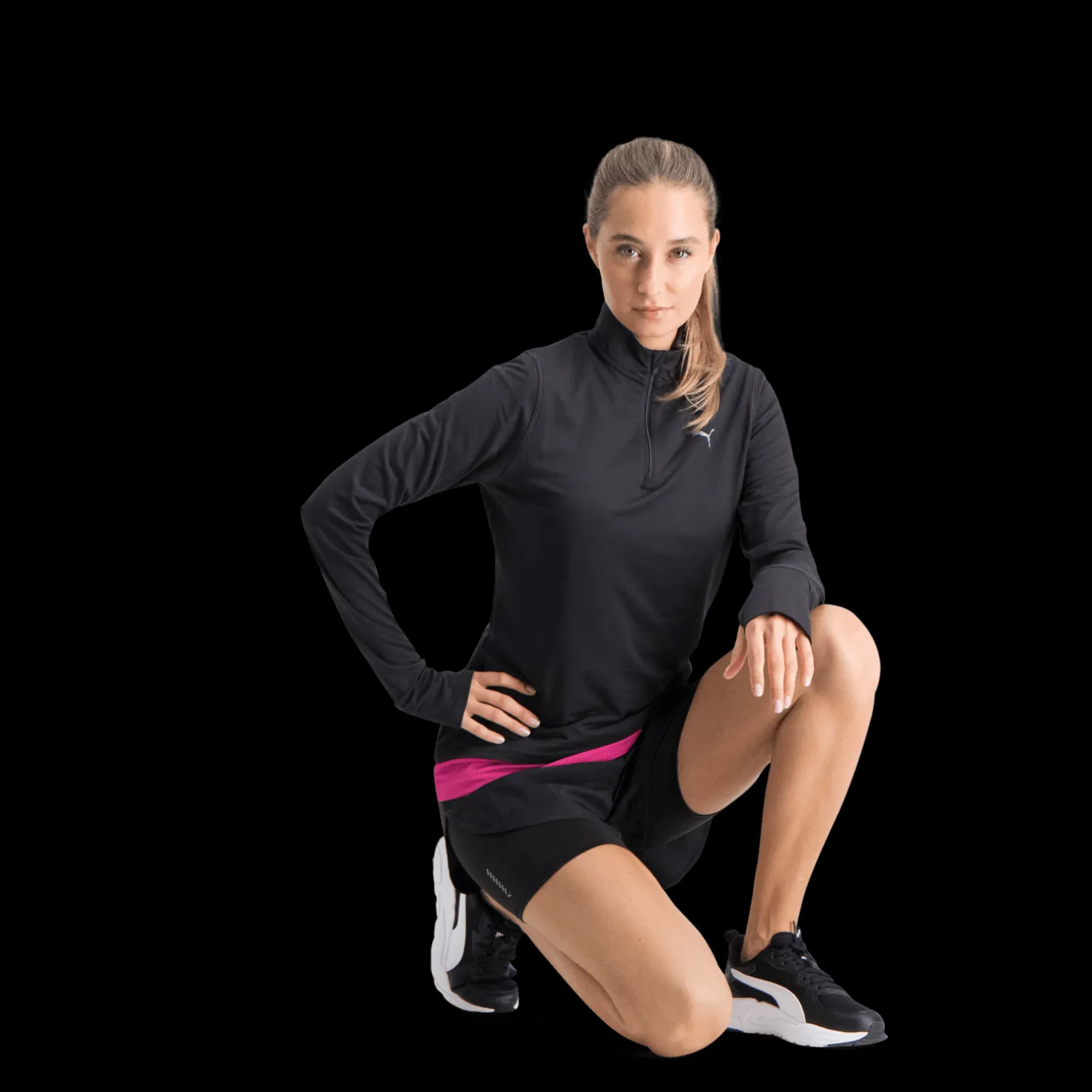 Mukavat juoksushortsit, joiden sisällä on tiiviisti istuvat trikoot kosteutta siirtävää ja hengittävää materiaalia. Sivuhalkiot varmistavat hyvän liikkumavapauden. Joustava vyötärö, jossa sisätasku.