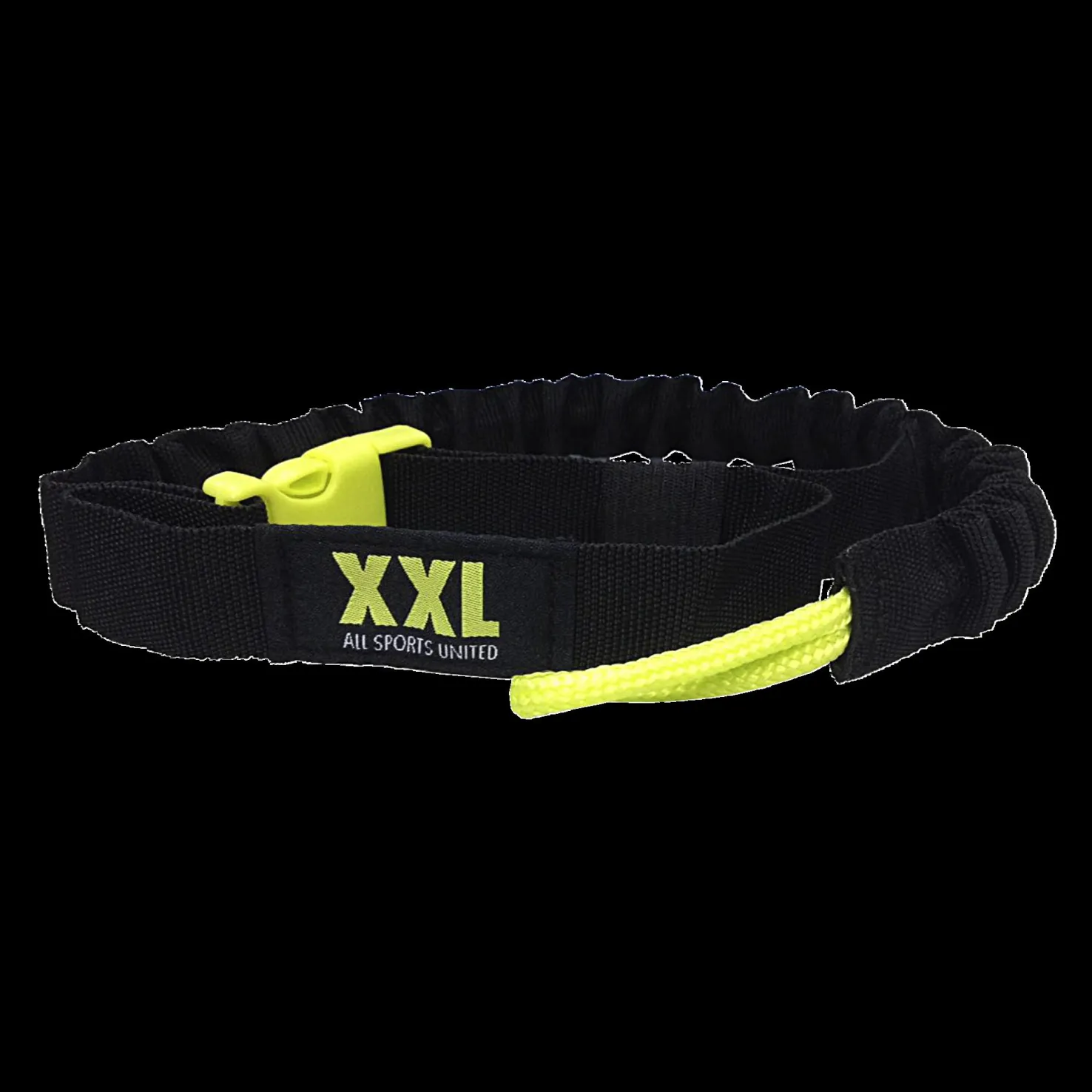 Lumilaudan varmuushihna, tukevaa nailonia. Nailonsukkaan upotettu kuminauha nykäysten pehmentämiseen. Kiinnitetään lautaan ja jalan ympäri. XXL-logo.
