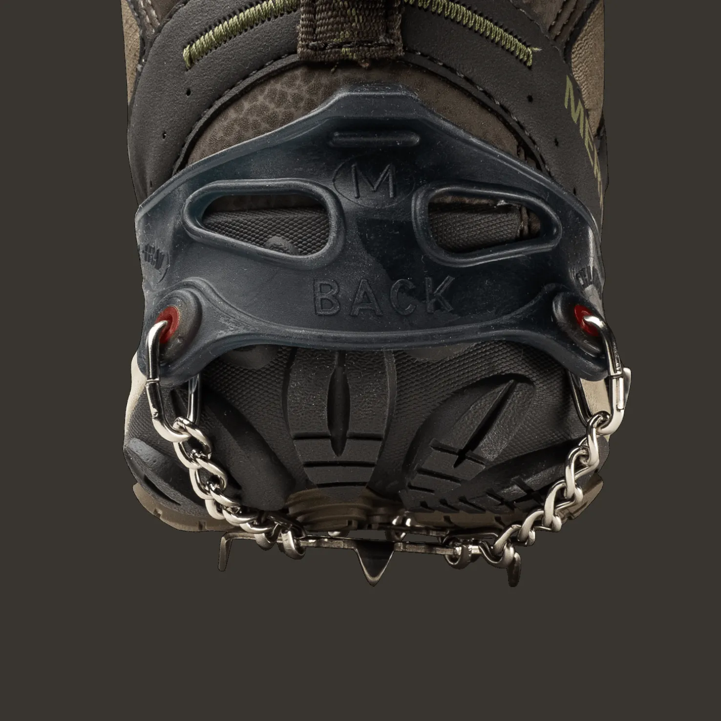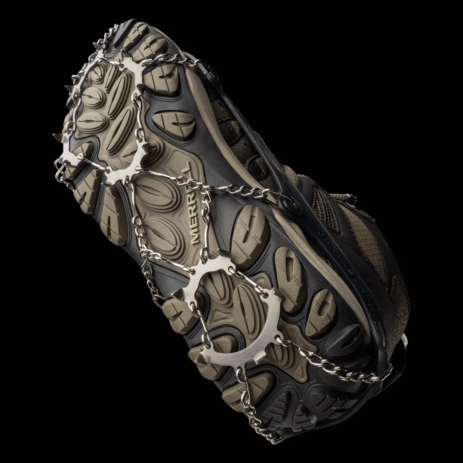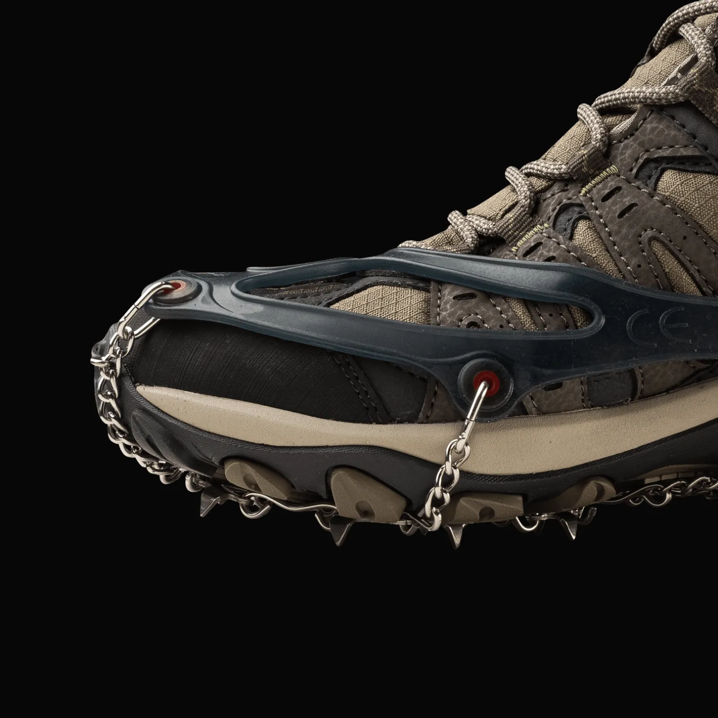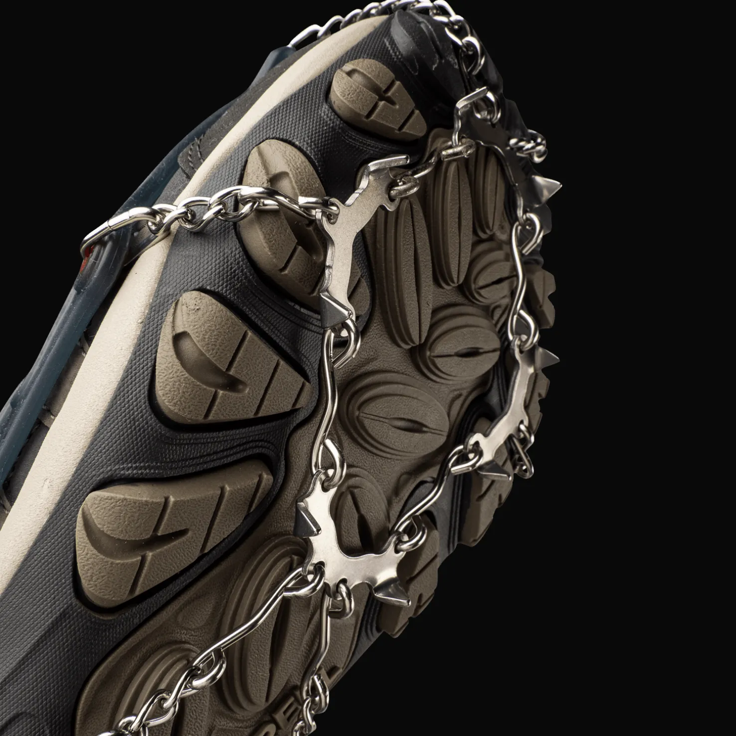 Kengän päälle pujotettava liukueste koostuu teräsketjusta ja kevyestä kestävästä silikonihihnasta, joka pysyy napakasti paikallaan. Helppo ja nopea kiinnittää! Paino: 195 g (koko L)