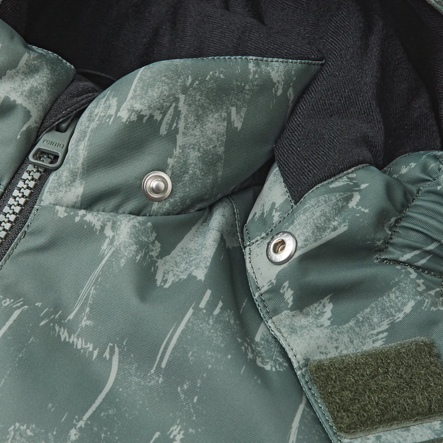 Talvihaalari on valmistettu veden- ja tuulenpitävästä ja hengittävästä materiaalista, jossa on likaa hylkivä pinta, joka varmistaa veden- ja tuulenpitävyyden. Kokonaan tiivistetyt saumat estävät veden tunkeutumisen sisään.