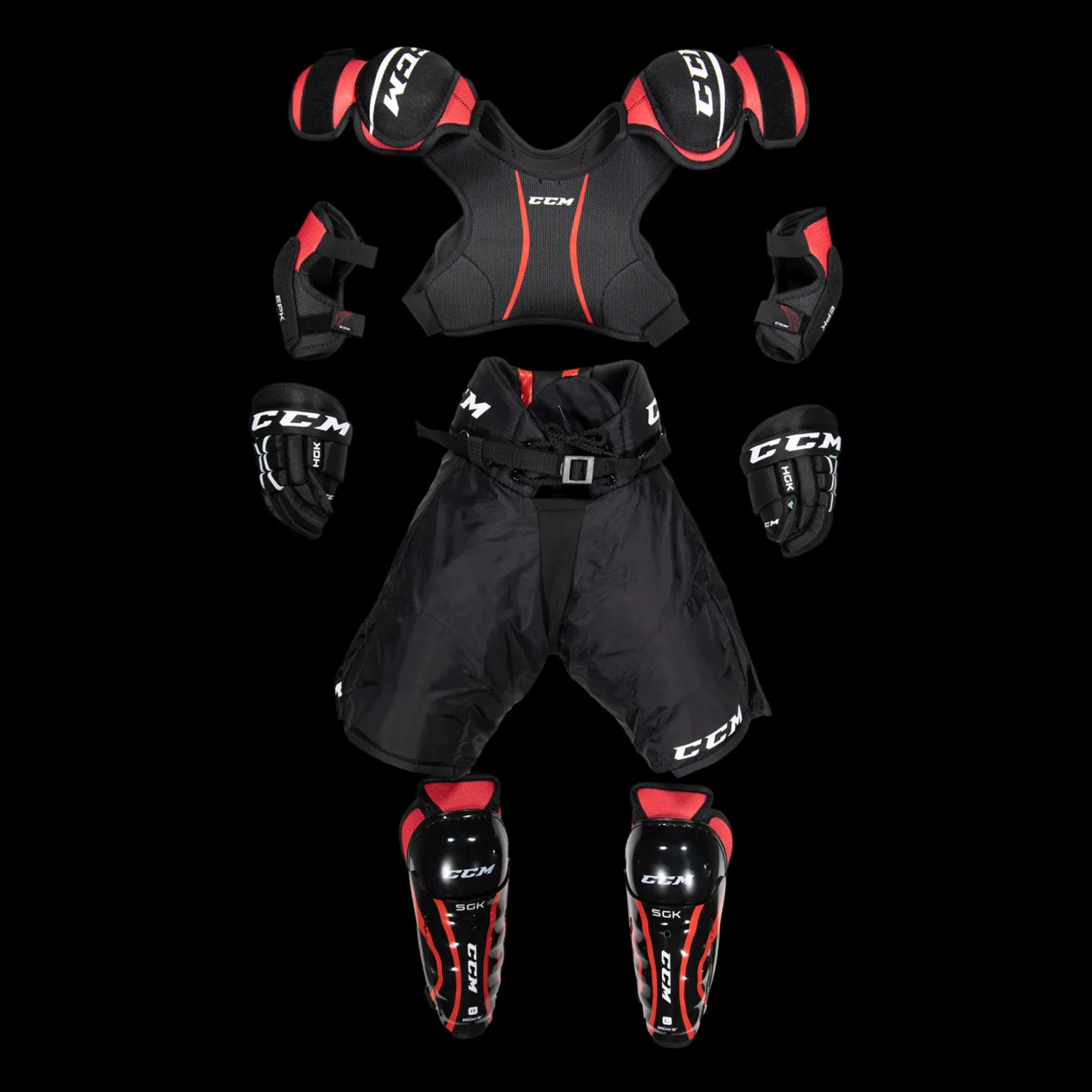 Setti nuorelle jääkiekkoilijalle. Sisältää hartiasuojat, kyynärsuojat, säärisuojat, hanskat ja housut. Täydellinen aloittelijalle.