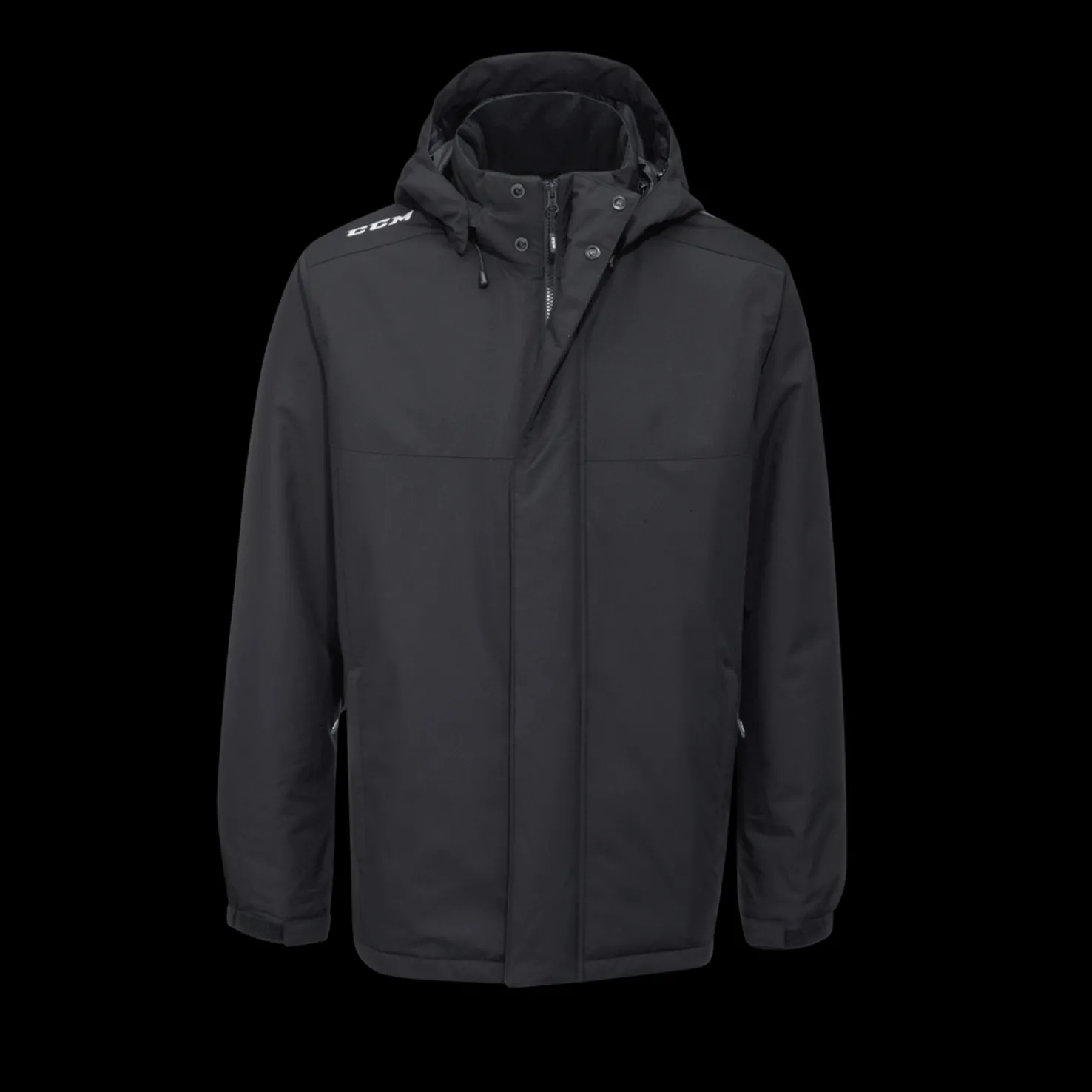 CCM:n Team Winter Jacket on valmistettu 100% polyesteristä. Takissa on huopakalvo, joka pitää veden ulkona. Strategisesti sijoitettu CCM-logo olkapäällä.