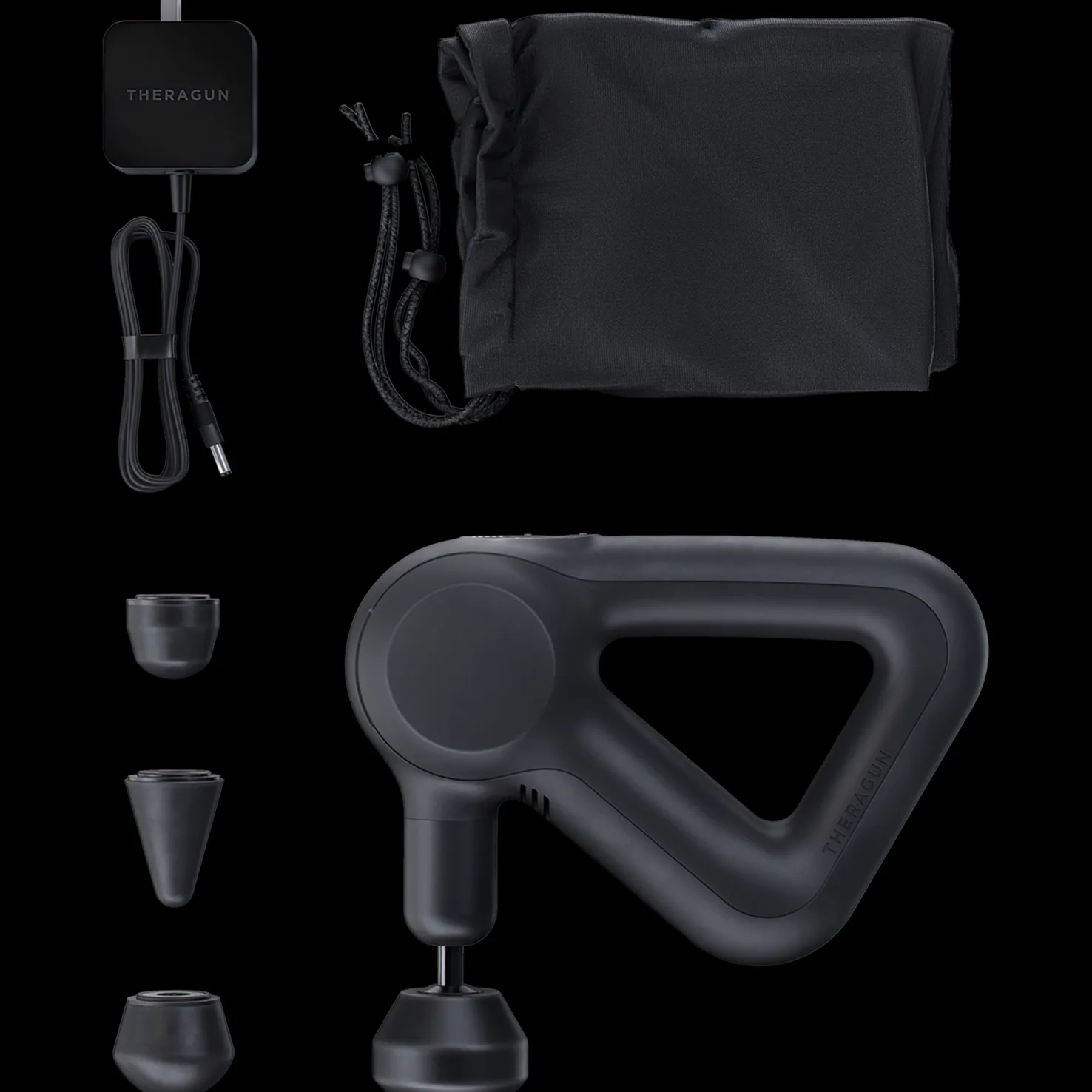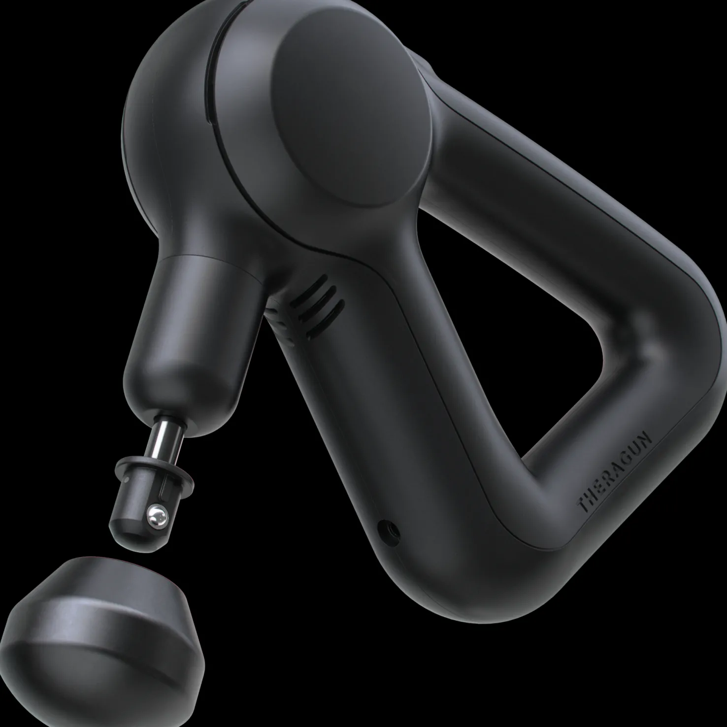 Theragun Prime -hierontavasaran mukana toimitetaan neljä vaihdettavaa hierontapäätä koko vartalon hierontaan. Valitse vaimentava, peukalon-, kartion- tai normaali pallonmuotoinen hierontapää.