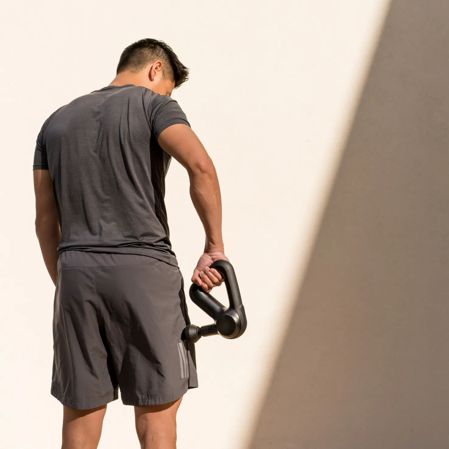 Theragun Prime -hierontavasarassa on miellyttävä ergonominen muotoilu, joka tarjoaa neljä eri asentoa. Näin voit hieroa kehoa eri kulmista.