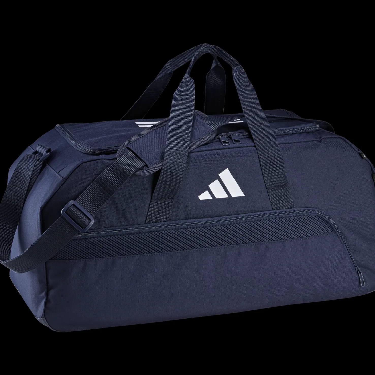 Adidaksen Tiro L Duffle -laukussa on topatut olkahihnat mukavuuden lisäämiseksi, ja siinä on ylimääräinen säilytyslokero hikisille vaatteille tai hikisille jalkapallokengille.